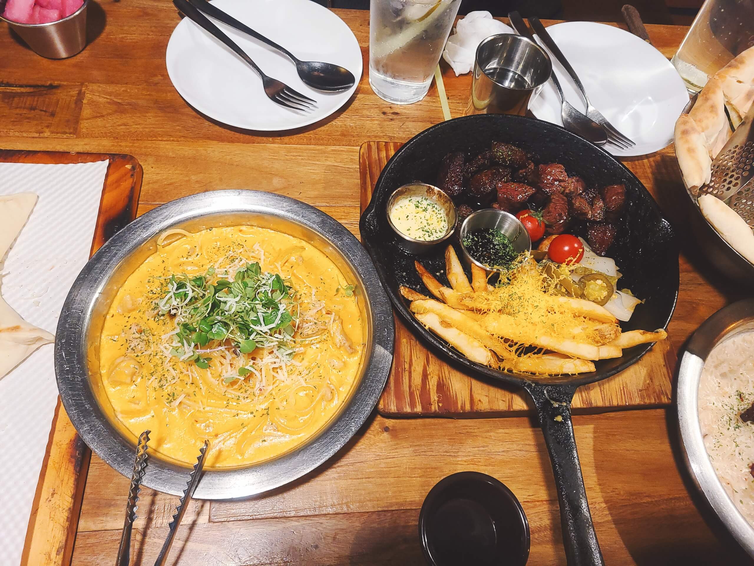 함께 모인 사람들이 6명이기에 패밀리세트 메뉴를 주문해보았습니다. 가격은 정확하지는 않지만 약 13만원 정도 나온 것 같아요. 세트메뉴라 그런지 파스타와 리조토, 스테이크와 피자까지 골고루 맛볼 수 있었습니다. 양이 꽤 많은 편이어서 6명이 먹는데도 나중에 배가 불러서 음식이 남을 정도였어요. 커플이 가신다면 2인용 세트를 주문하셔도 괜찮을 것 같고, 단품으로 2~3가지 주문하셔도 괜찮을 것 같아요.