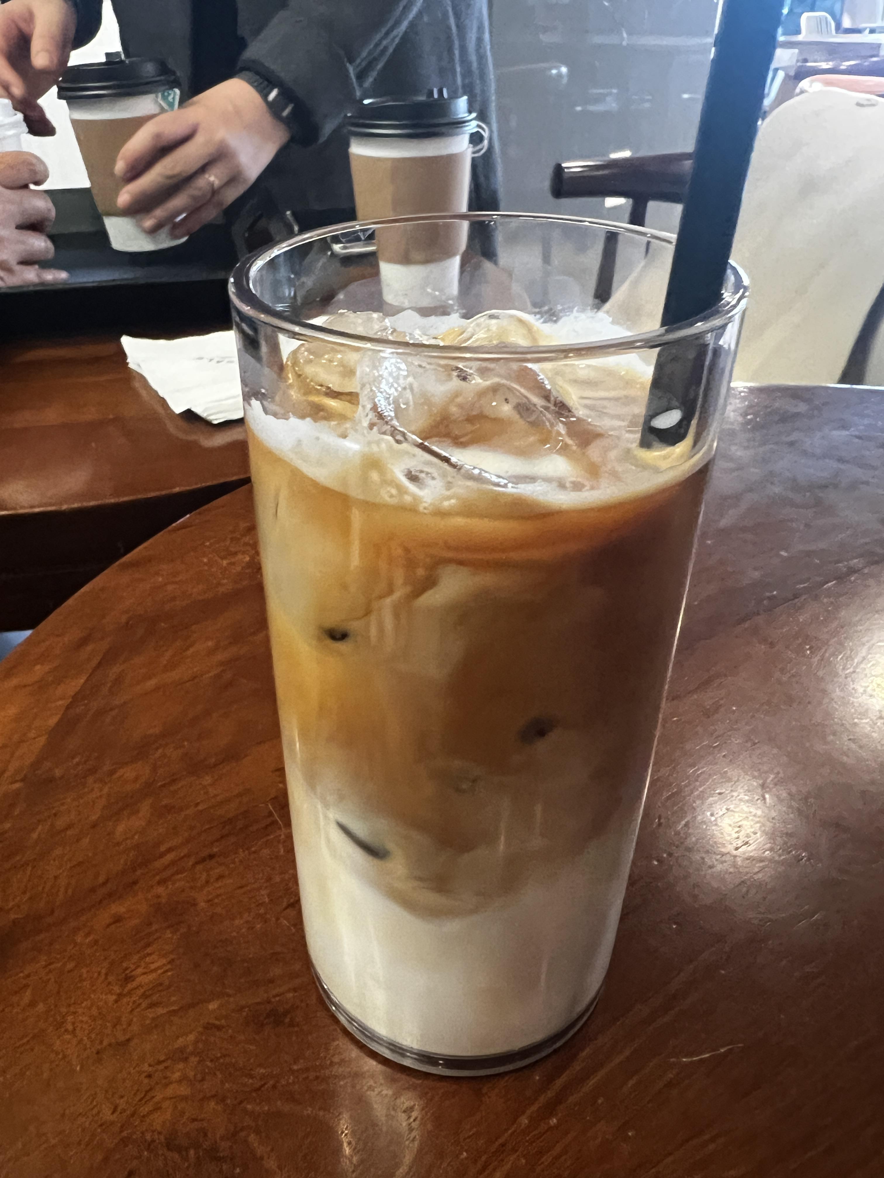 늘 그렇듯 아이스 음료를 시켜봅니다. 케이크 종류의 디저트류도 다양하게 구비되어 있었는데, 식사를 하고 온 터라 당기지 않아 패스해 봅니다. 라테는 고소한 맛이, 아메리카노는 약간 시큼한 맛이 나는 원두를 사용합니다. 시큼한 맛이 나는 원두가 고급이라고 하는데, 저는 고소한 맛이 나는 원두를 더 좋아해서 라테가 탁월한 선택이었네요!