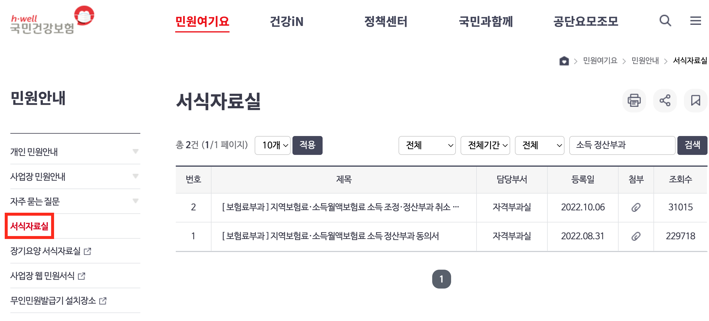 - 국민건강보험공단 - 개인민원 - 보험료 조회/신청