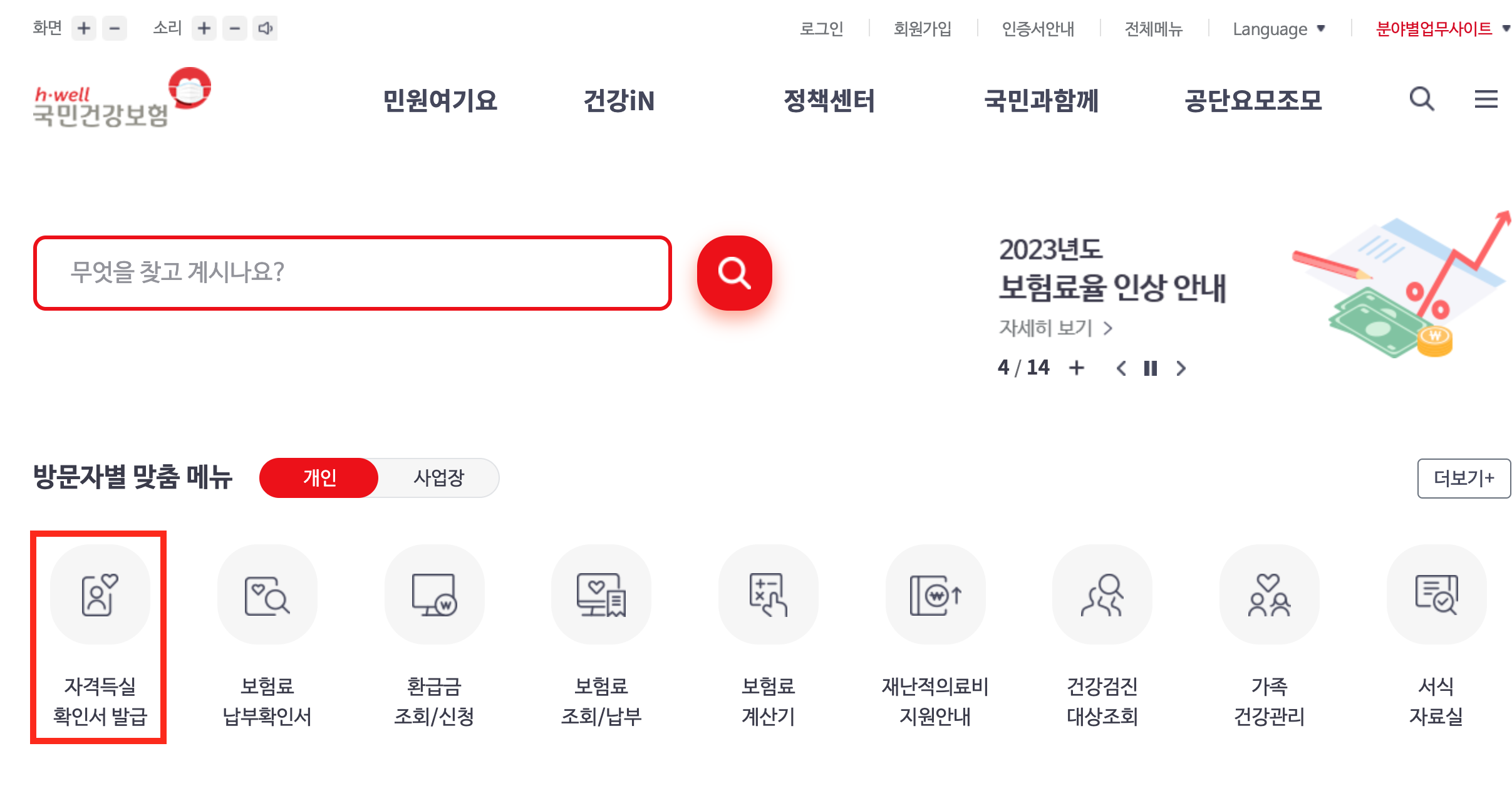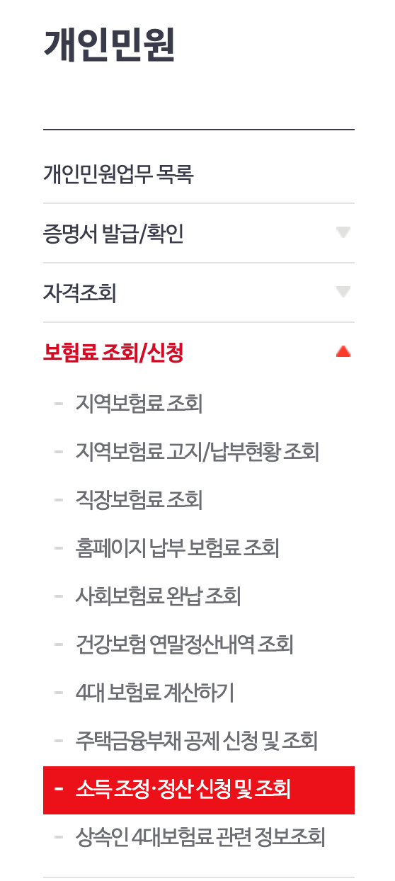 - 국민건강보험공단 - 개인민원 - 보험료 조회/신청