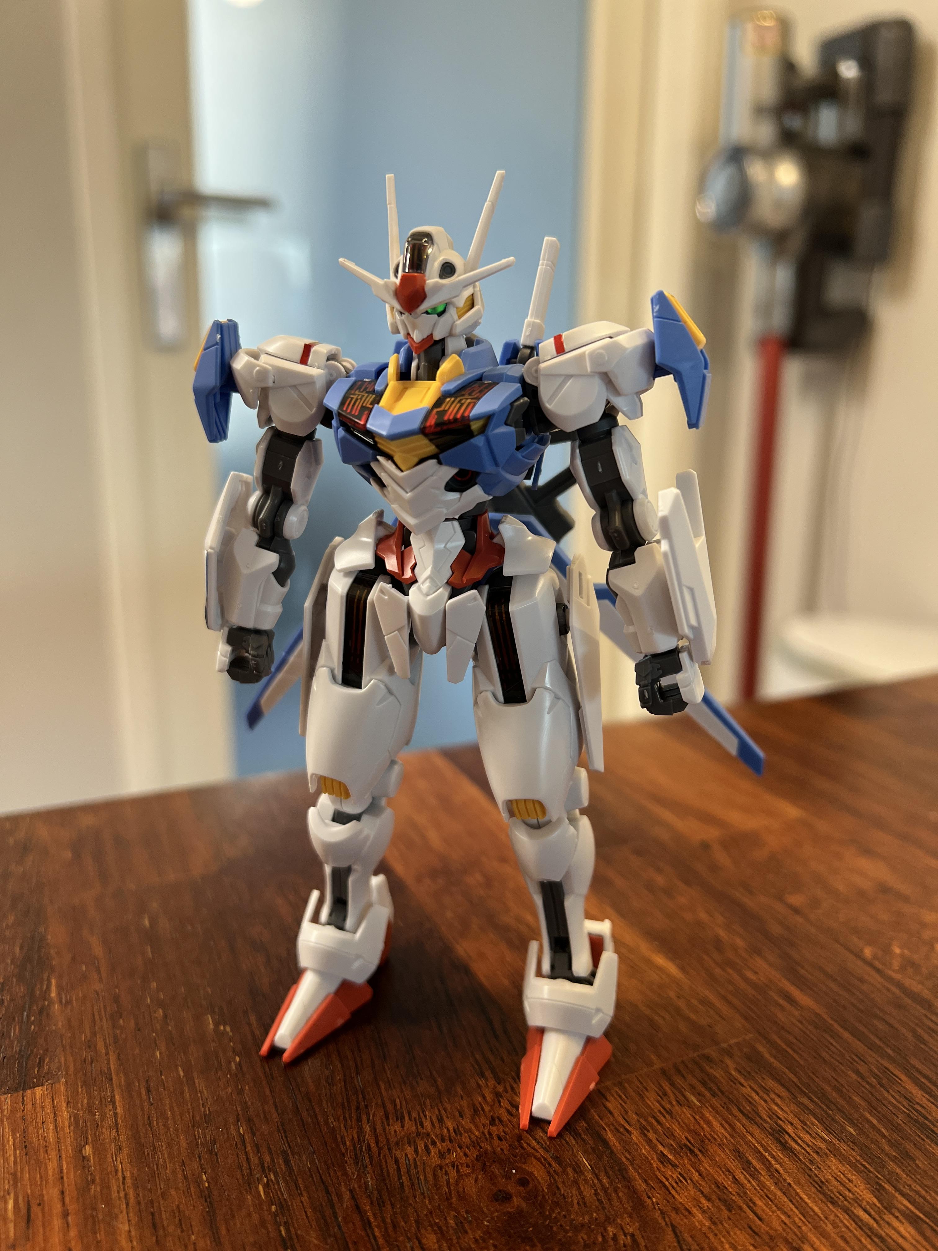건담 프라모델이 도착하니 박스를 들고 신나게 춤을 추다가 갑자기 멈추더니 조립을 시작합니다. 손이 좀 빨라서인지 만드는데 총 2시간도걸리지 않은 것 같아요. 만들기는 그만큼 어렵지 않습니다. 초등학생 정도면 쉽게 잘 만들 수 있는 수준인 것 같네요. 다 만들어놓은 에어리얼은 보기에도 늠름합니다. 만화에서 보던 이런저런 장면들을 재연하면서 전시하지 않고 가지고 노는 것을 보니 아무래도 곧 여기저기 떨어지고 부서져서 재활용통으로 갈지도 모르겠지만요.