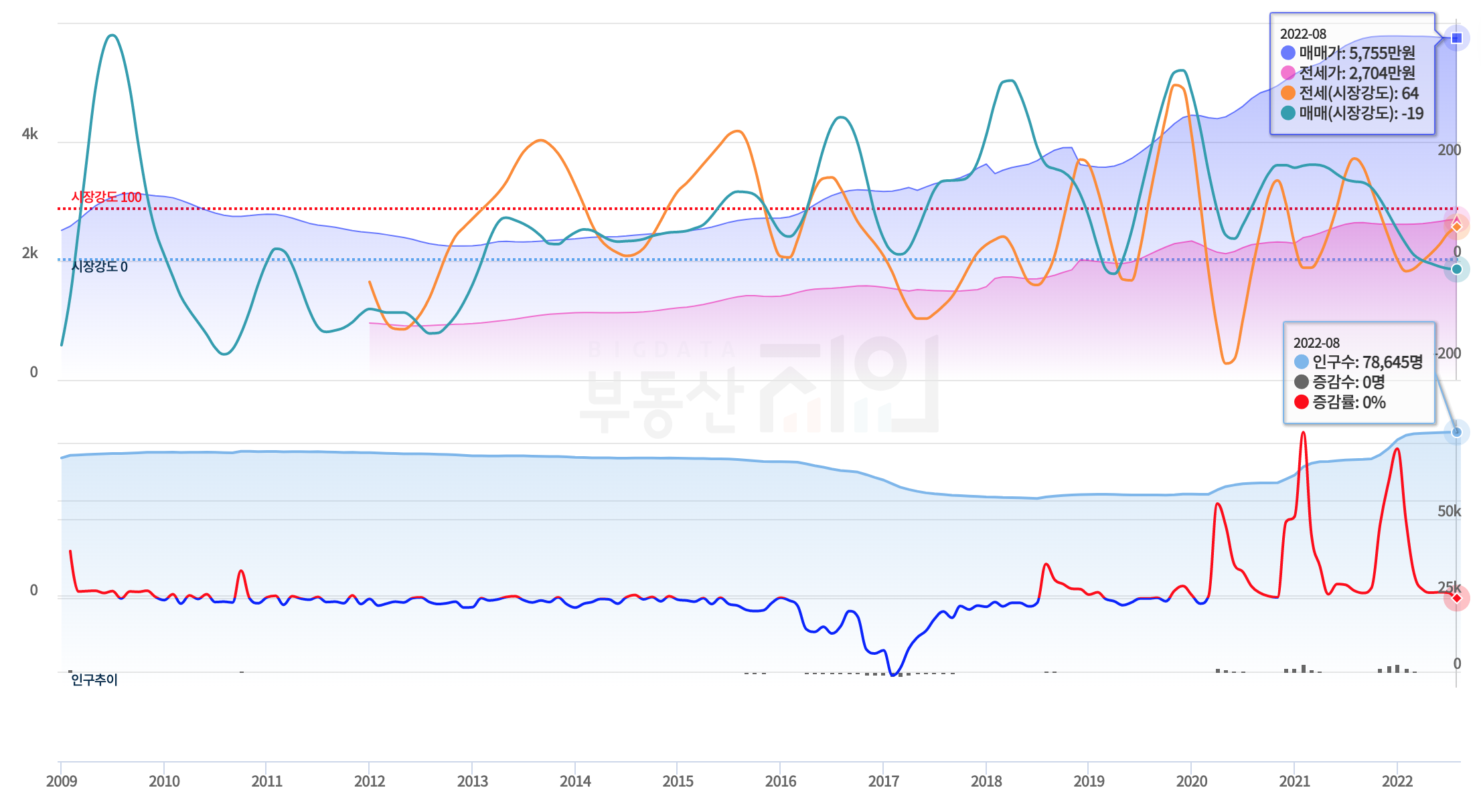 경기도 자체의 멀티차트(부동산 지인 참고)를 살펴보면 2020년 ~ 2021년에 매매가가 큰 폭으로 상승하였고, 2022년에는 상승폭이 살짝 내려왔지만 여전히 유지되고 있는 느낌이네요.