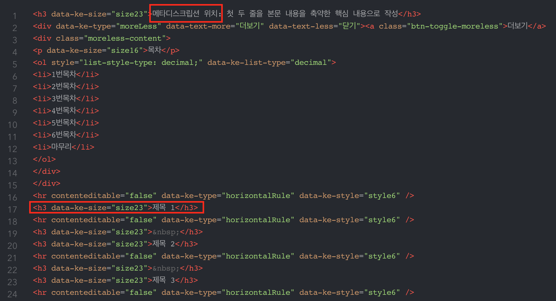 - 현재 저장되어 있는 서식: H테그 적용 서식