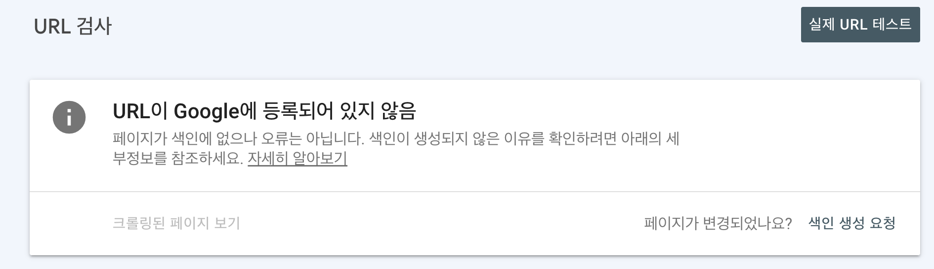 글을 클릭하면 오른쪽과 같이 'URL 검사'가 나타나게 됩니다. 이제 이를 클릭해서 색인을 생성해줍니다.