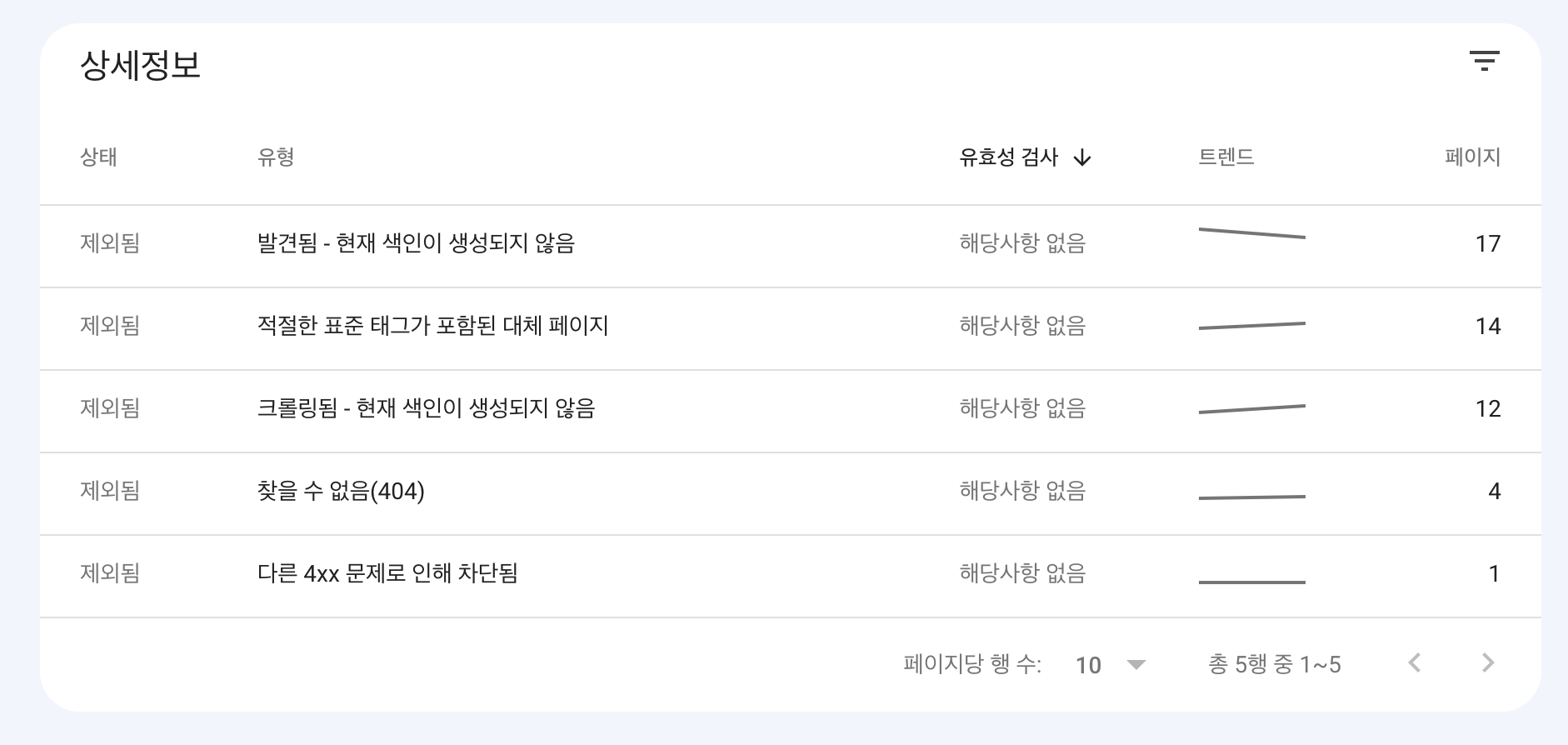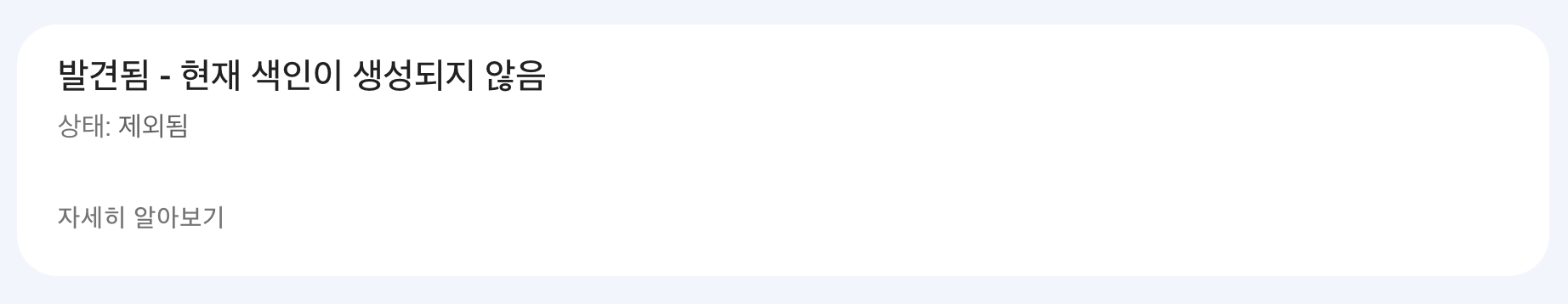 상세정보가 표시되고 제외된 글들이 나옵니다. 맨 위에 '발견됨-현재 색인이 생성되지 않음'을 눌러봅니다.