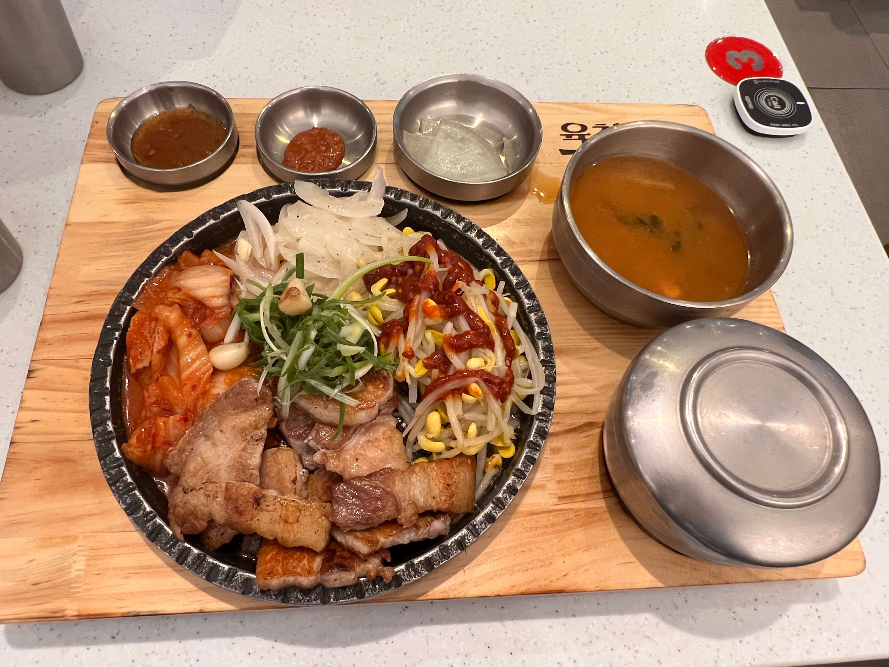 맛은 생각보다 그냥 아는 맛이어서 특별할 것은 없다는 느낌이었어요. 늘 김포공항 식당가에 오면 '면 주방'에만 들렀었는데, 저의 최애 식당이 사라지고 나니 차선책으로 선택한 음식들은 그냥 그렇다는 느낌이 상당하네요. 하지만 삼겹살도 맛있게 잘 구워나오고 콩나물과 파채, 양파 볶음과 같은 야채까지 잘 구성되어 있기 때문에 한끼 먹기에는 괜찮은 것 같습니다(가격을 생각하면 그냥 그렇지만요).