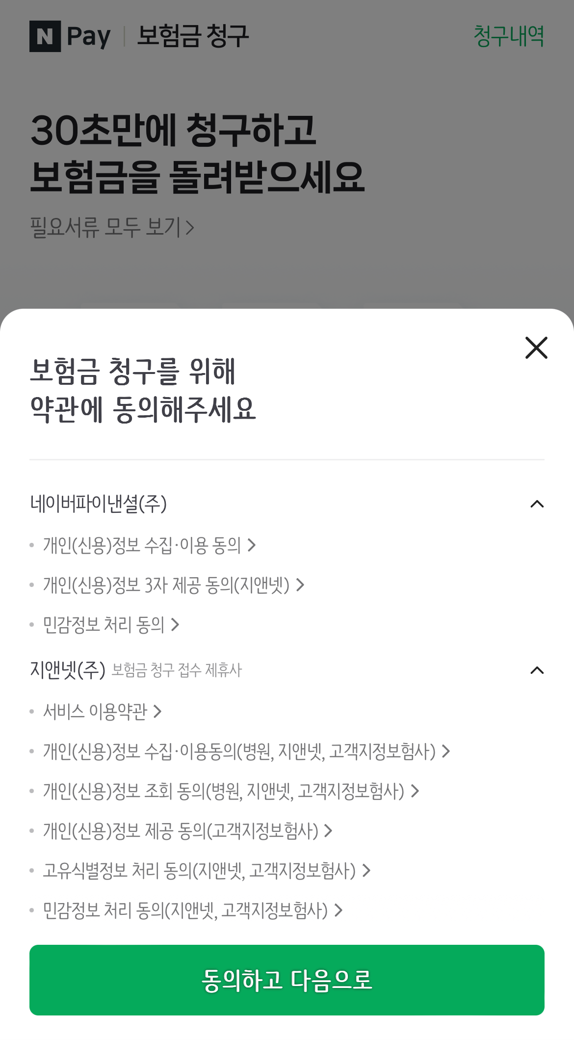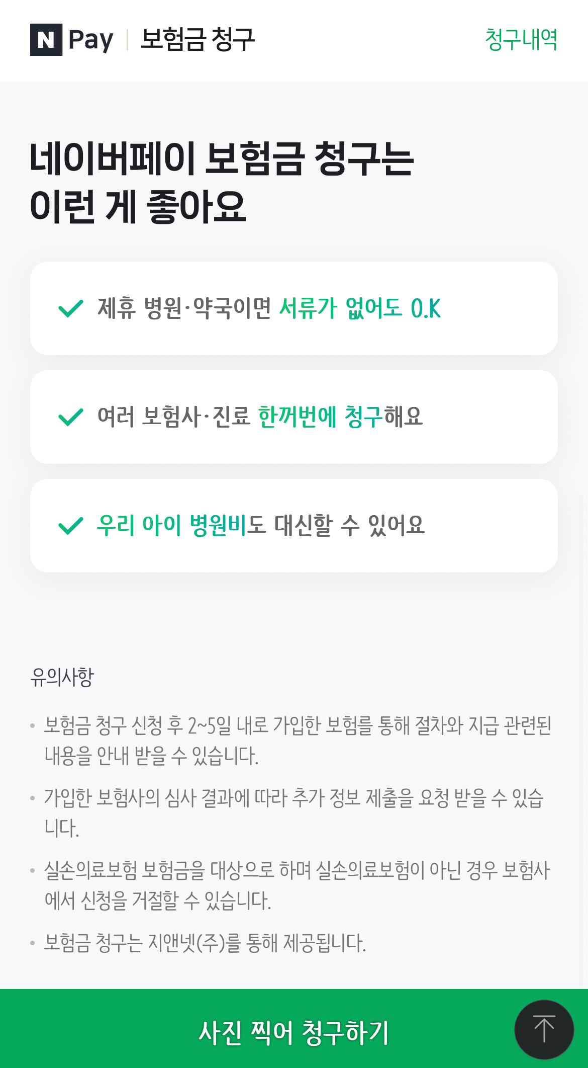 - 네이버 초록창에 '네이버페이 보험금청구' 검색