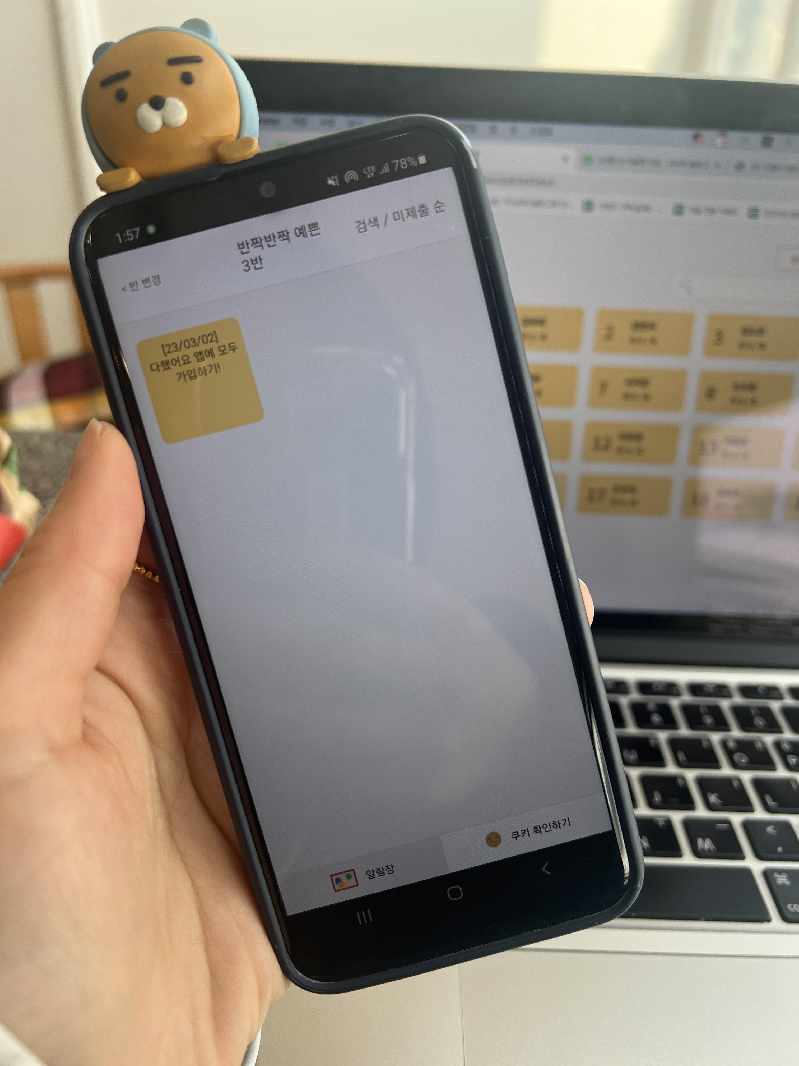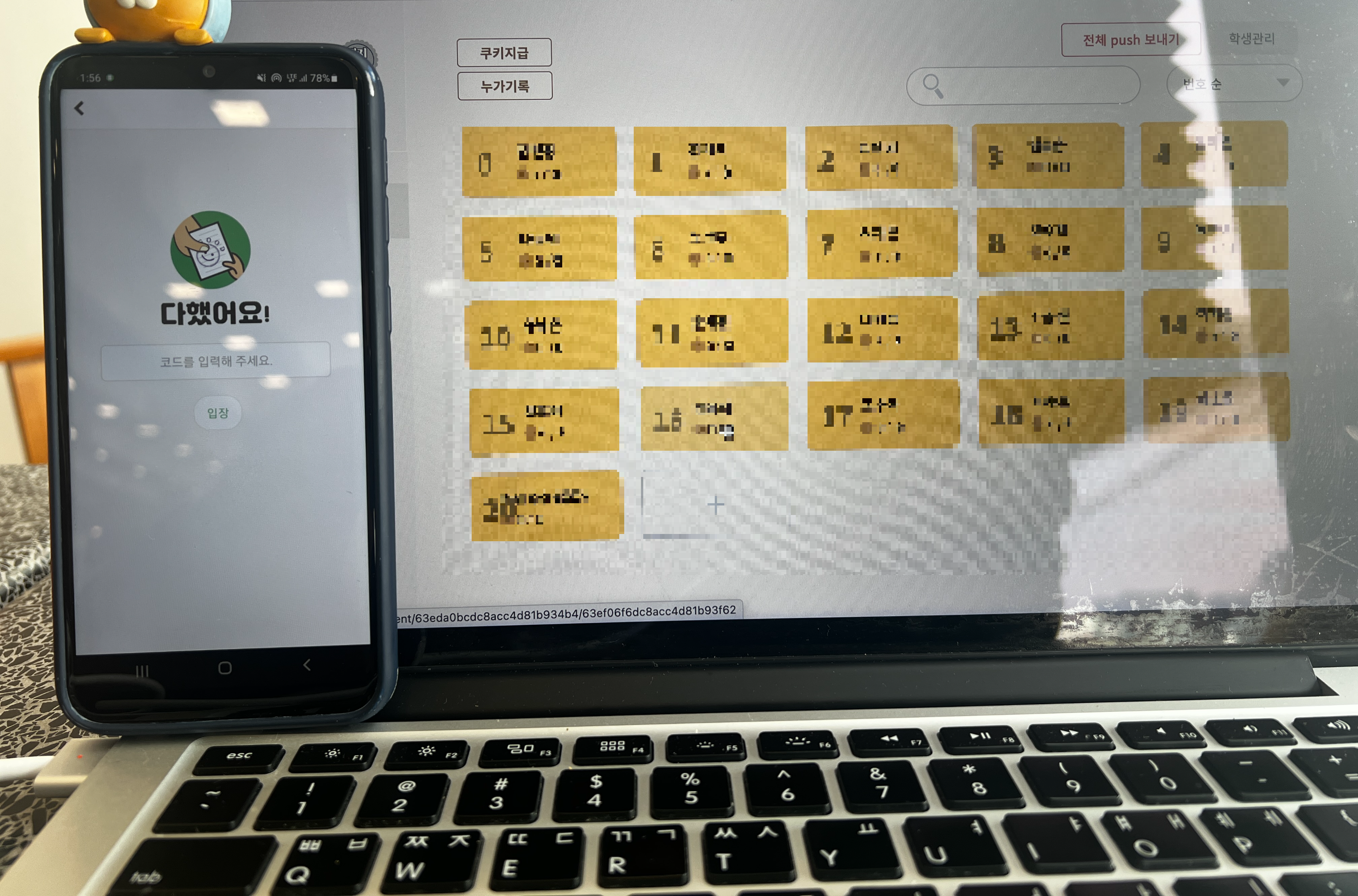교사용은 웹으로만 있기 때문에 위의 URL로 접속하여 가입을 해 보았습니다. 카카오톡으로 쉽게 가입이 가능해서 일단 들어가서 둘러보다가 명렬표가 생각나 곧 만날 아이들의 이름을 한땀한땀 넣어주었습니다. 학생들에게는 어떻게 보이는지 잘 모르기 때문에 체크해볼 겸, 저를 0번으로 넣어서 생성한 후, [다했어요] 앱도 다운받아봅니다.