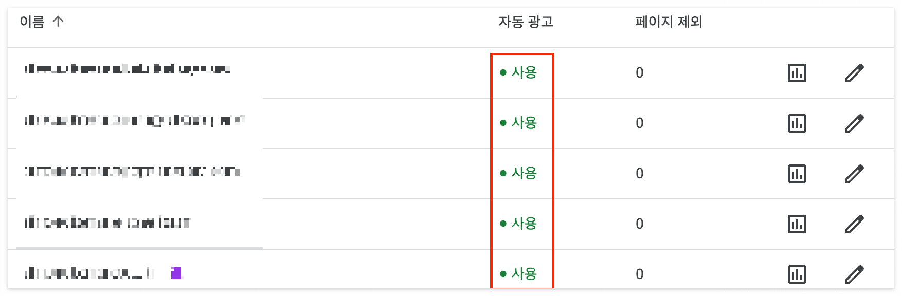 - 멀티플렉스 광고: 애드센스 3개 + 내가 작성한 글 5개가 섞여 8개의 글박스로 되어있는 광고