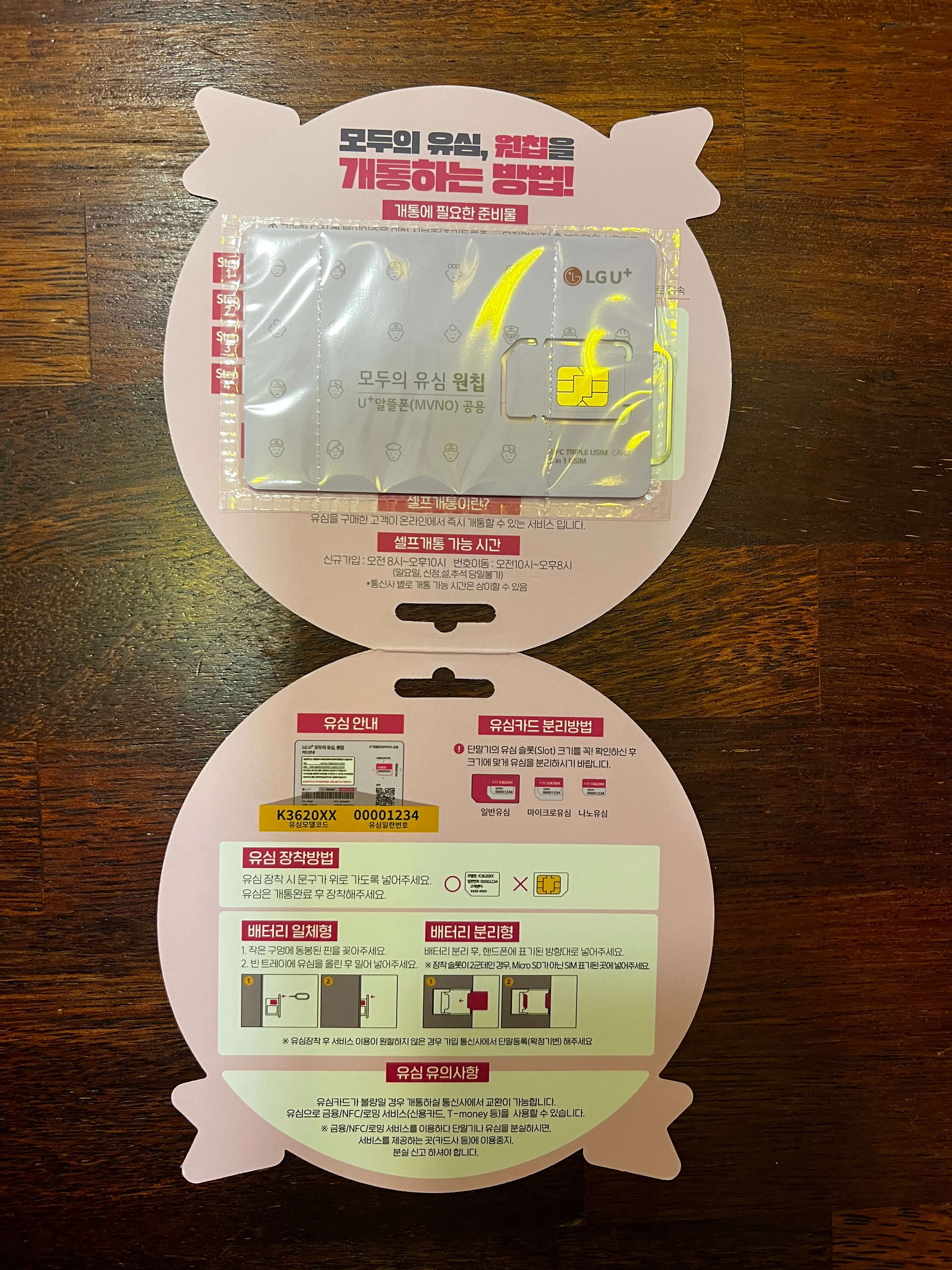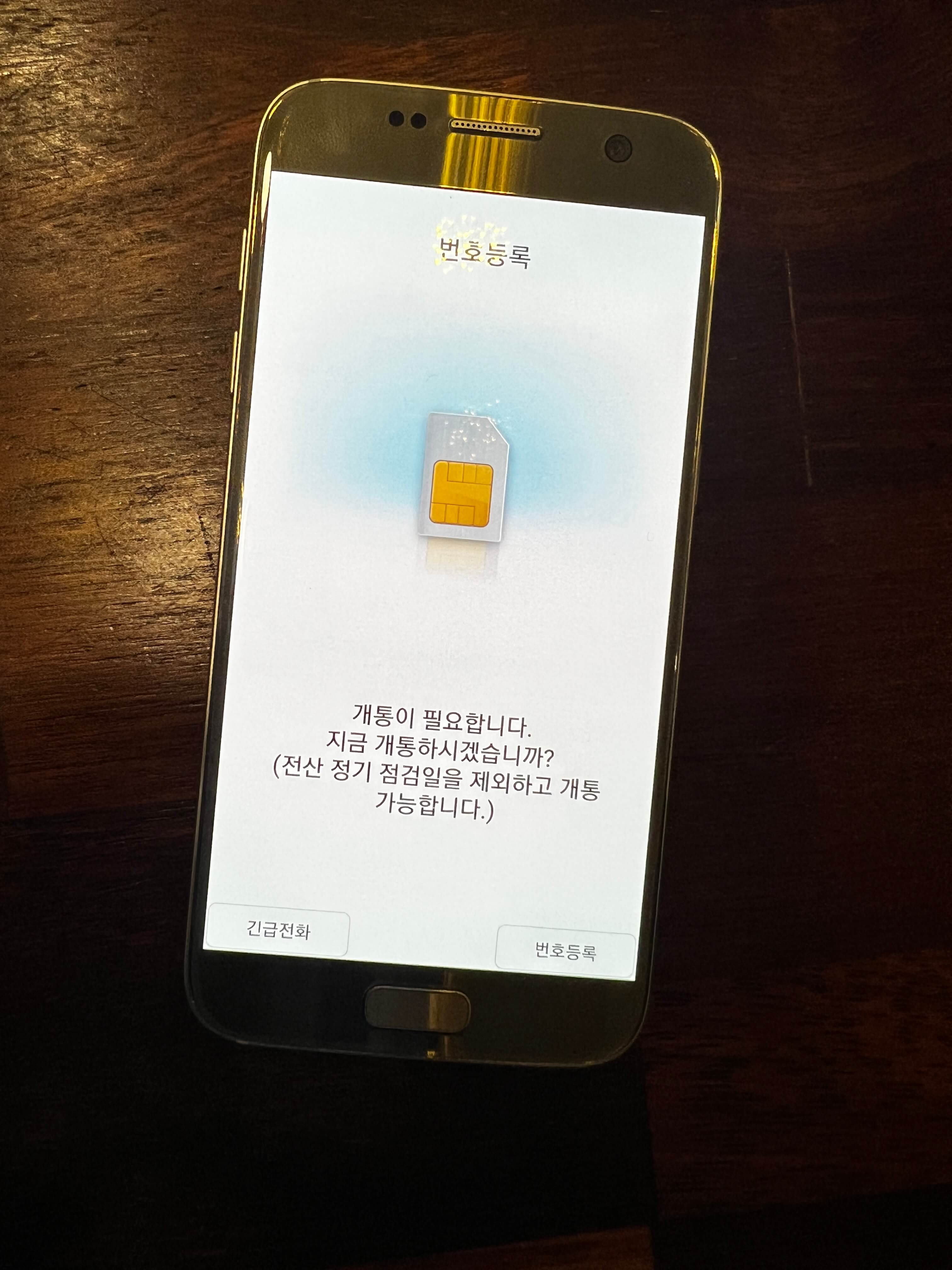 유심은 위와 같이 생겼습니다. LG U+ 통신망을 이용하나봅니다. 일단 뜯어서 서브폰에 넣어줍니다. 서브폰에 유심을 끼우면 저절로 개통되는 줄 알고 있던 저는 아래와 같은 메시지가 나와서 깜짝 놀랐지만 놀란 마음을 진정시키고 다시 개통을 시작해 봅니다.