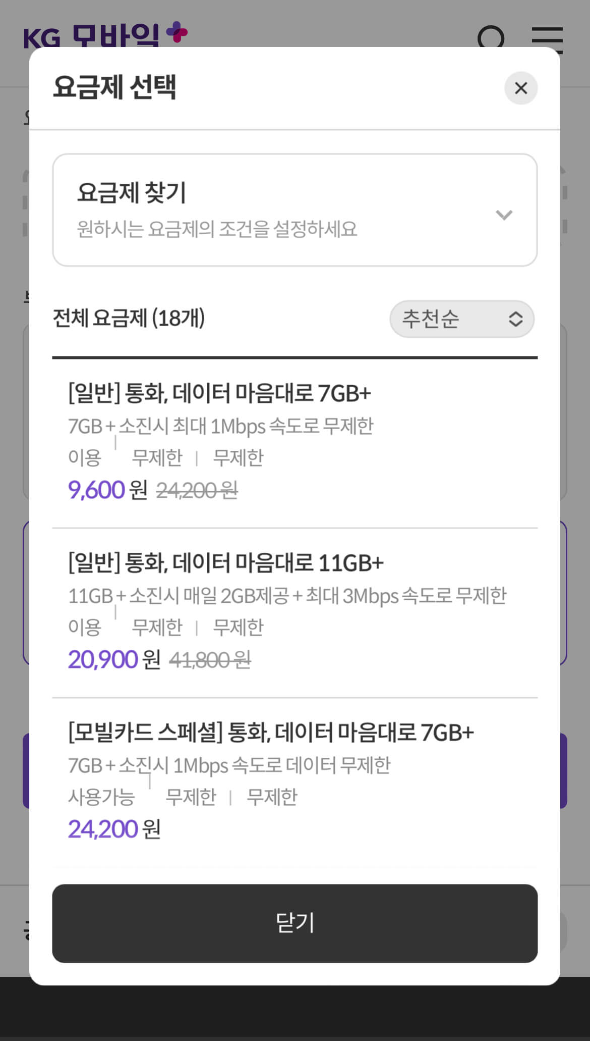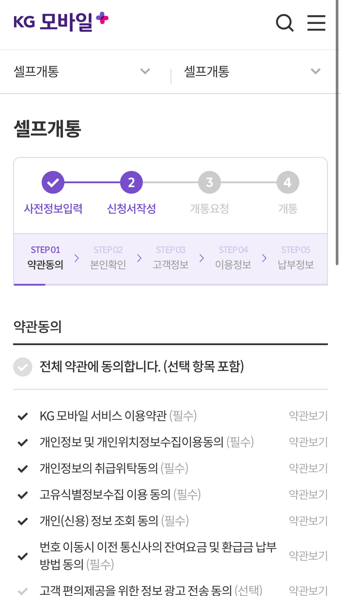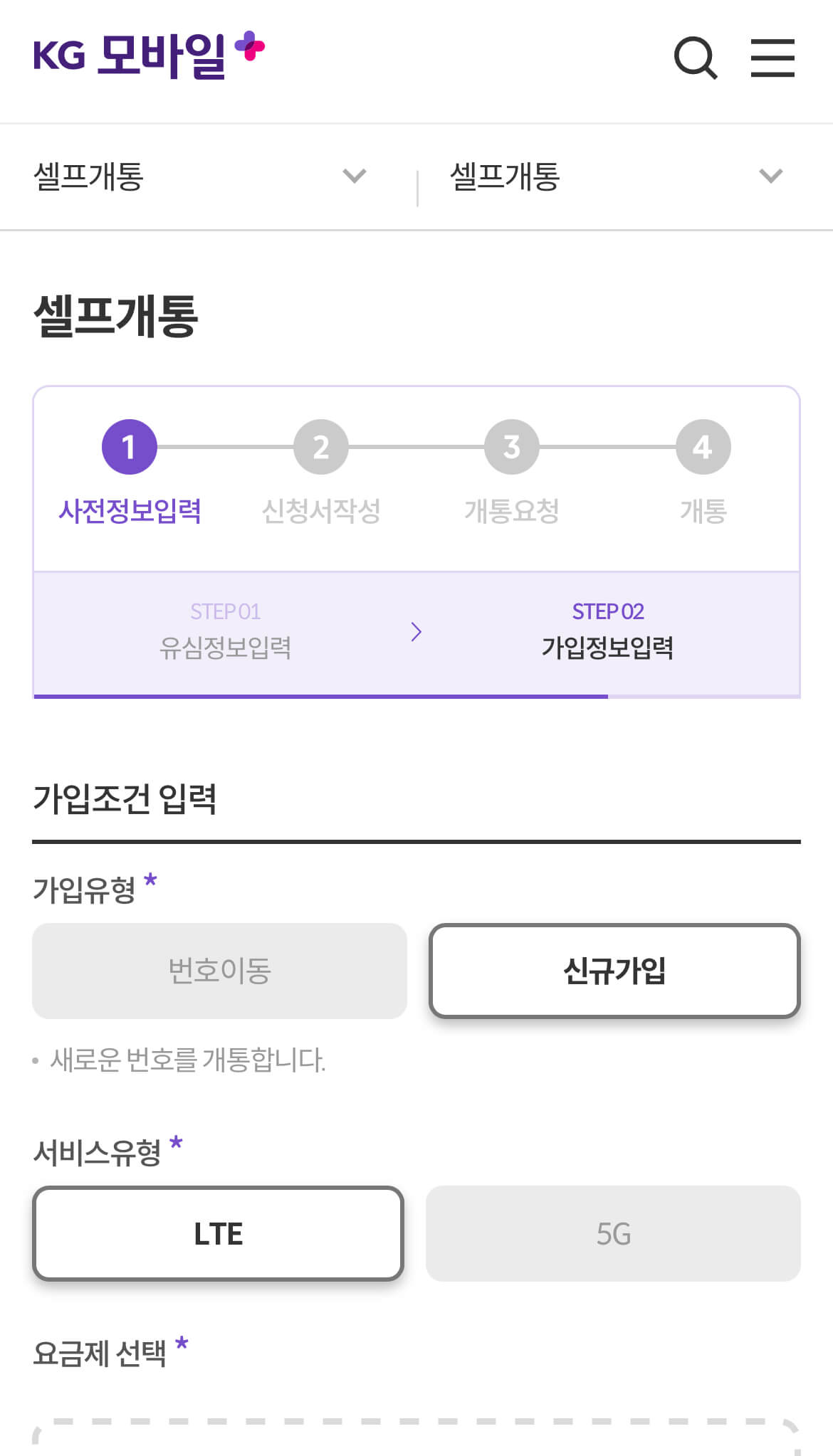 KG 모바일에서 개통 완료