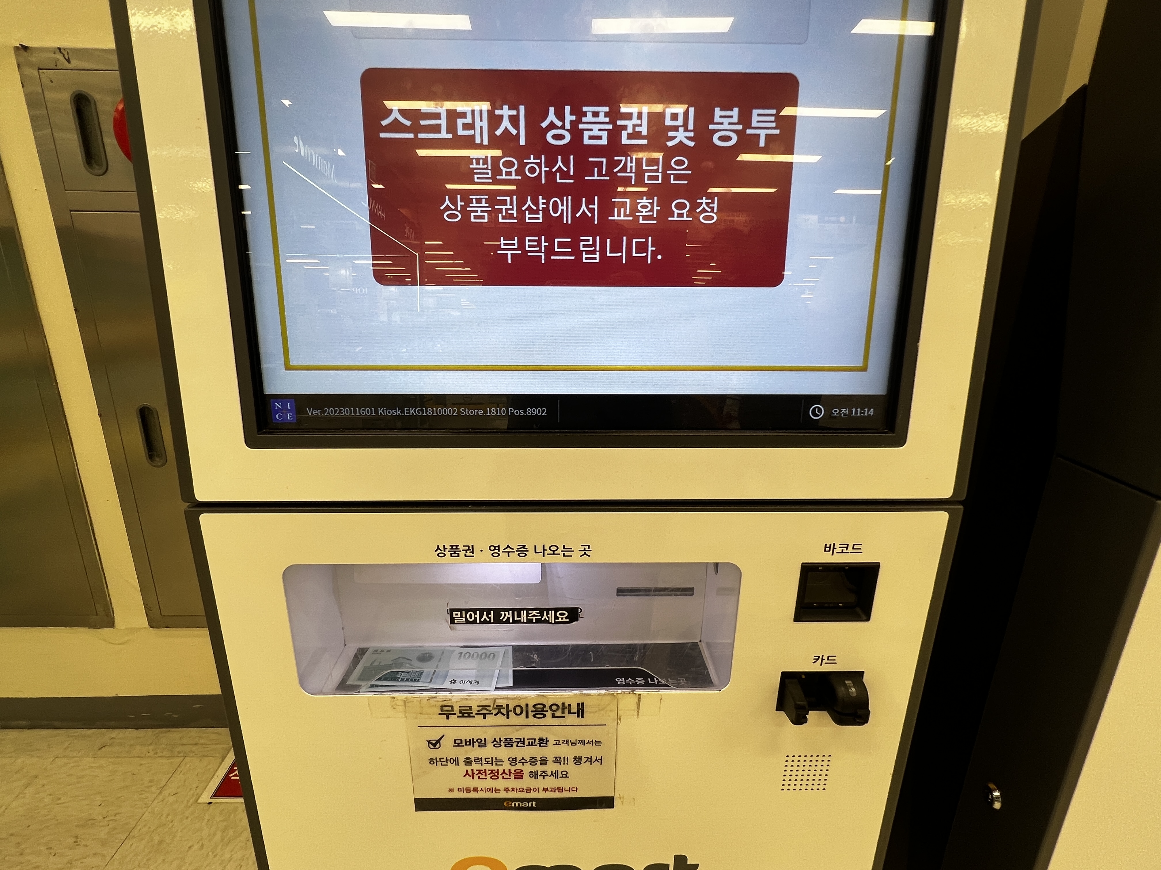 얼마 전 어딘가에서 사은품으로 받은 신세계 상품권이 있었습니다. 사용처는 신세계백화점 또는 이마트인데 금액권처럼 직접 사용할 수는 없고 이마트 상품권 무인교환기에서 지류상품권으로 교환해야 하기에 번거롭지만 이마트를 방문해봅니다.