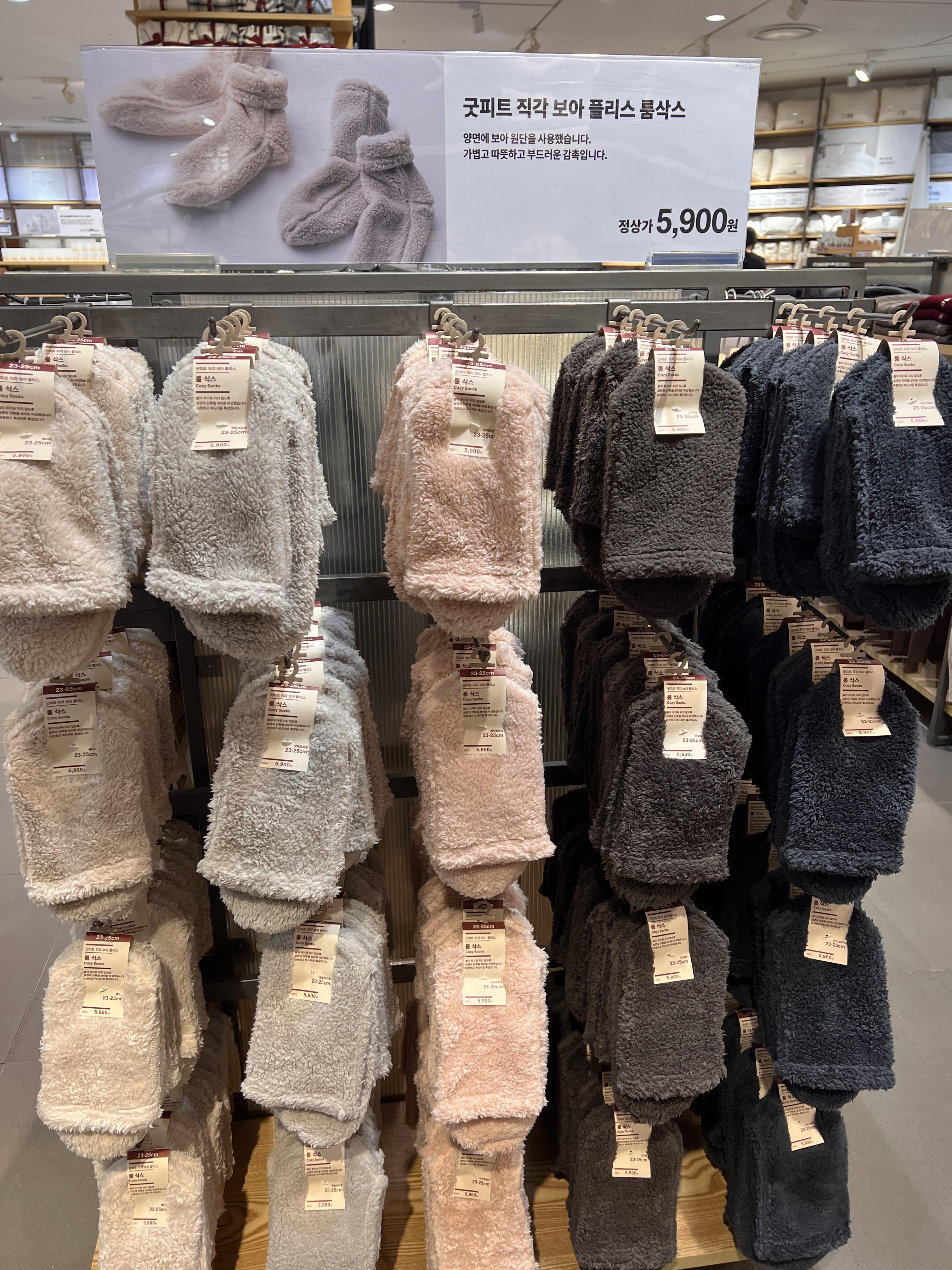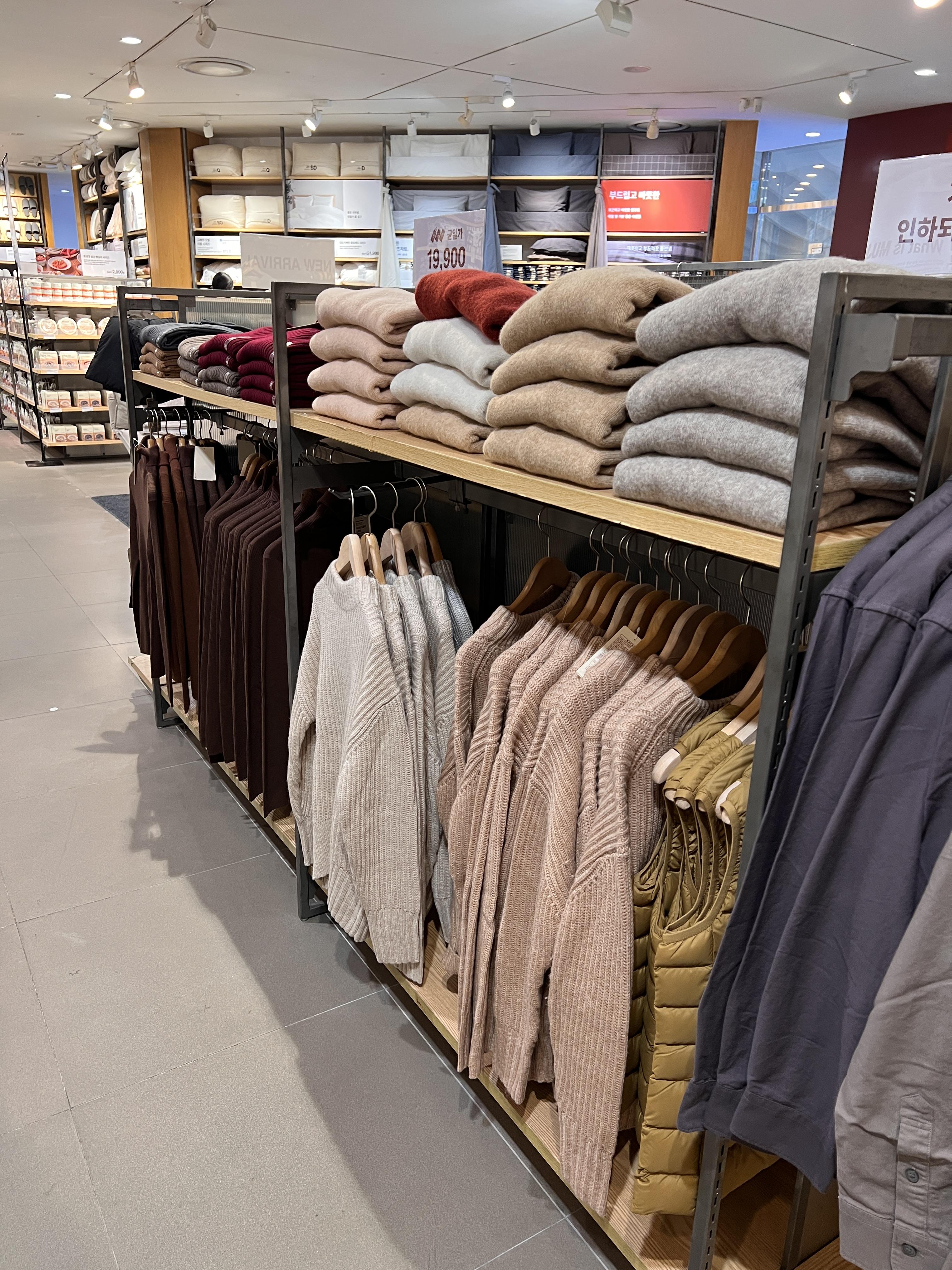 겨울을 따뜻하게 나는 데는 스웨터만한 것이 없죠! 양모로 짠 따뜻해 보이는 스웨터부터 뽀글이 목도리까지 여러 가지 겨울 제품이 구비되어 있었답니다. 겨울 제품들이 디피 되어있는 것 보니 이제 추운 바람이 불어오는 겨울이 다가온다는 것이 물씬 느껴지더라고요.