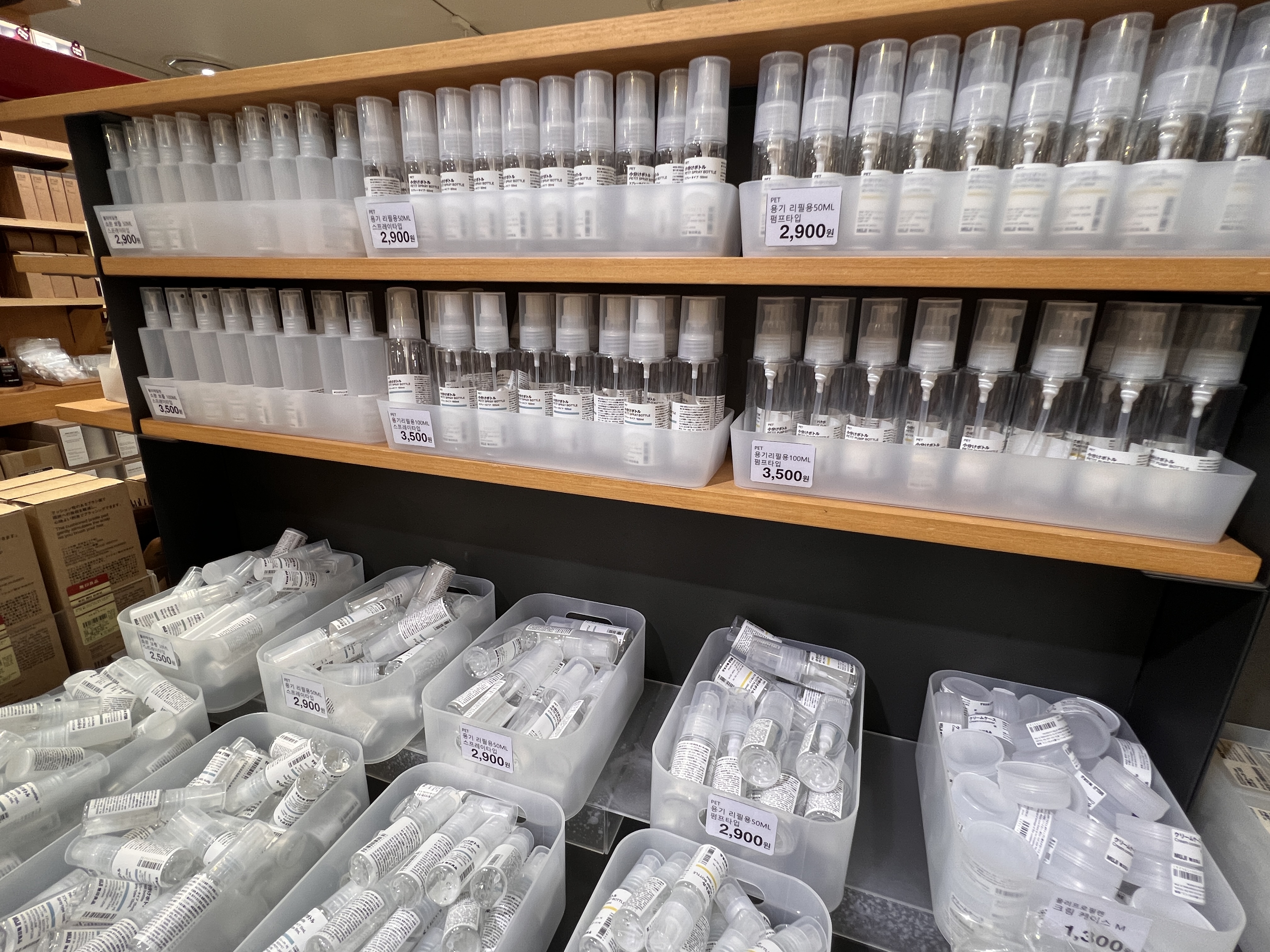 가끔 화장품을 공병에 덜거나 미스트병에 자주 쓰는 유사나 꿀광미스트 만들 때 필요한 조그마한 용기들도 다양하게 구비되어 있습니다. 가격이 엄청 싼 것은 아니지만 필요할 때 하나씩 구매하기는 괜찮을 것 같아요.