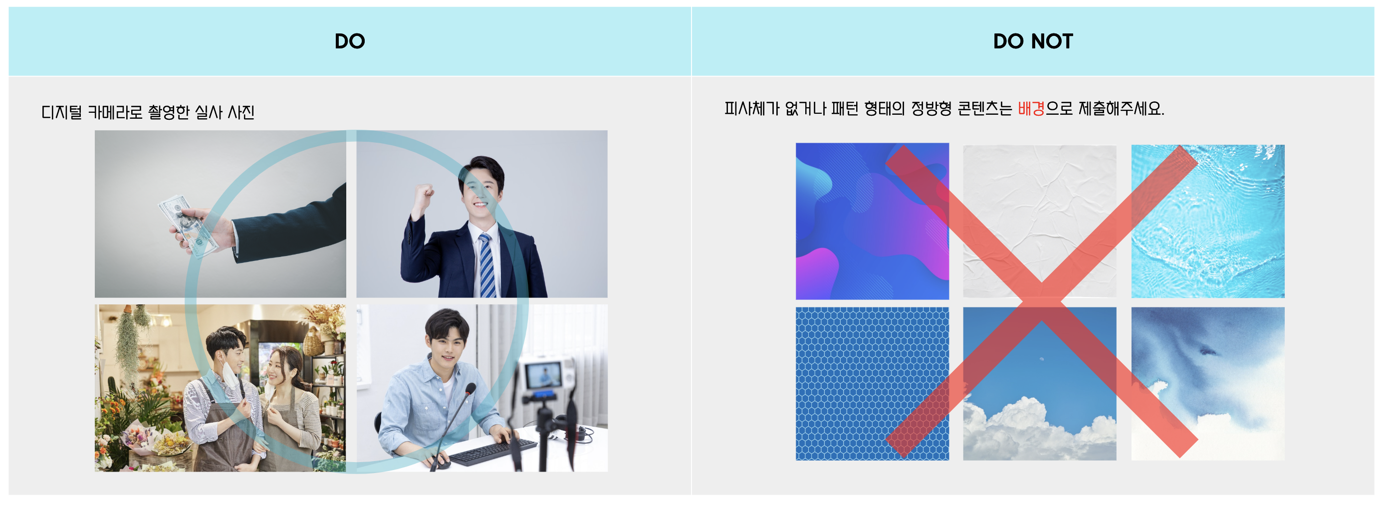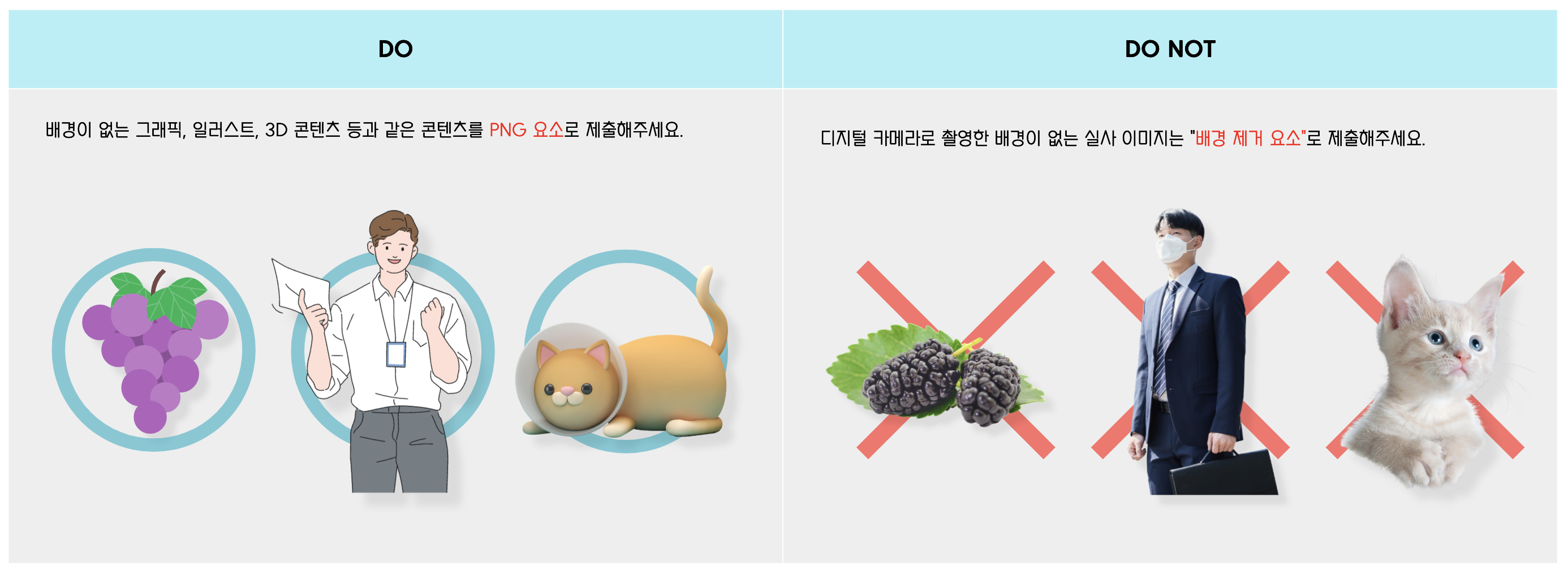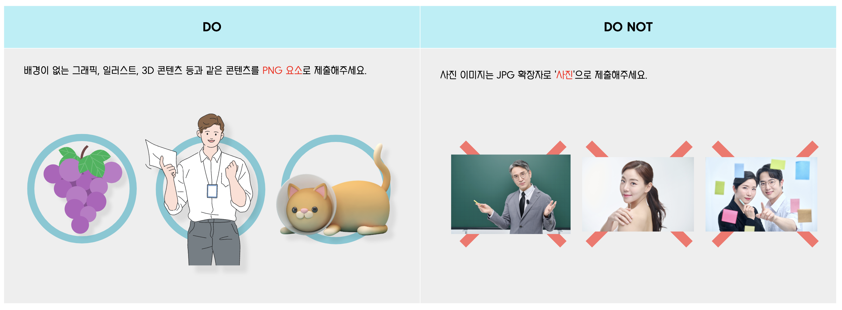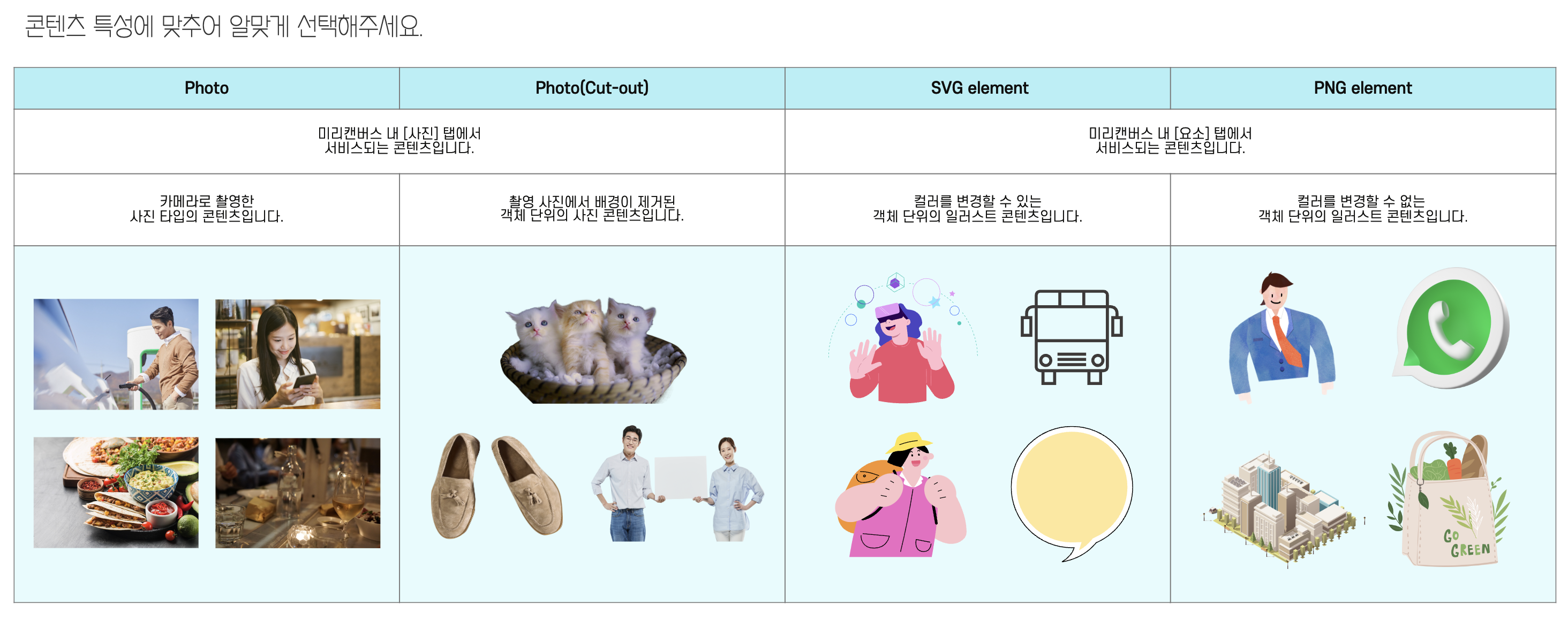 미리캔버스에서는 업로드할 수 있는 개체에 대하여 가이드를 제공하고 있는데요. 업로드하고자 하는 콘텐츠의 특성에 맞게 가이드라인이 되어있기 때문에 가급적 잘 맞추어 업로드하시면 될 것 같습니다.