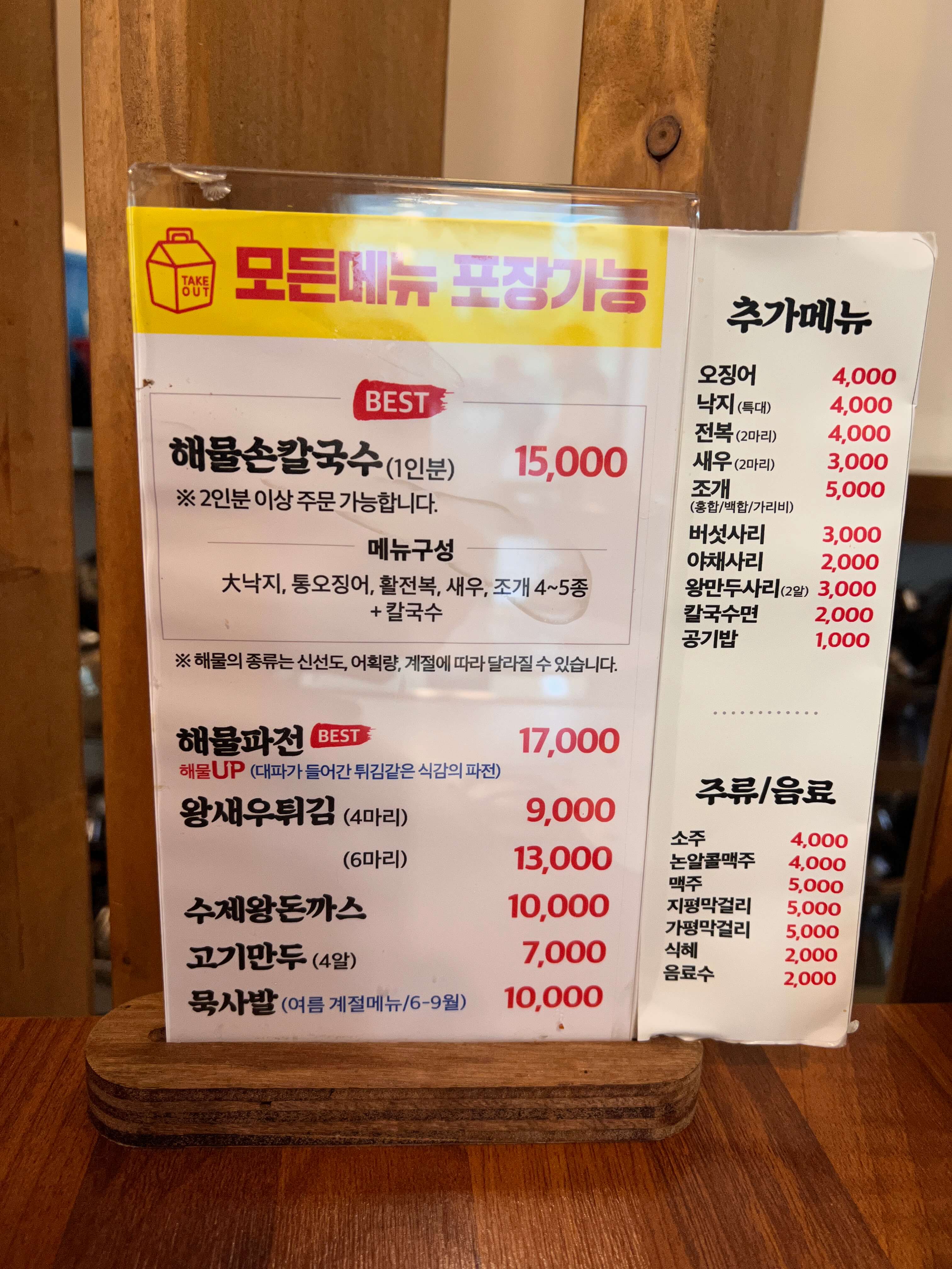 - 해물 손칼국수(1인분) 15,000원