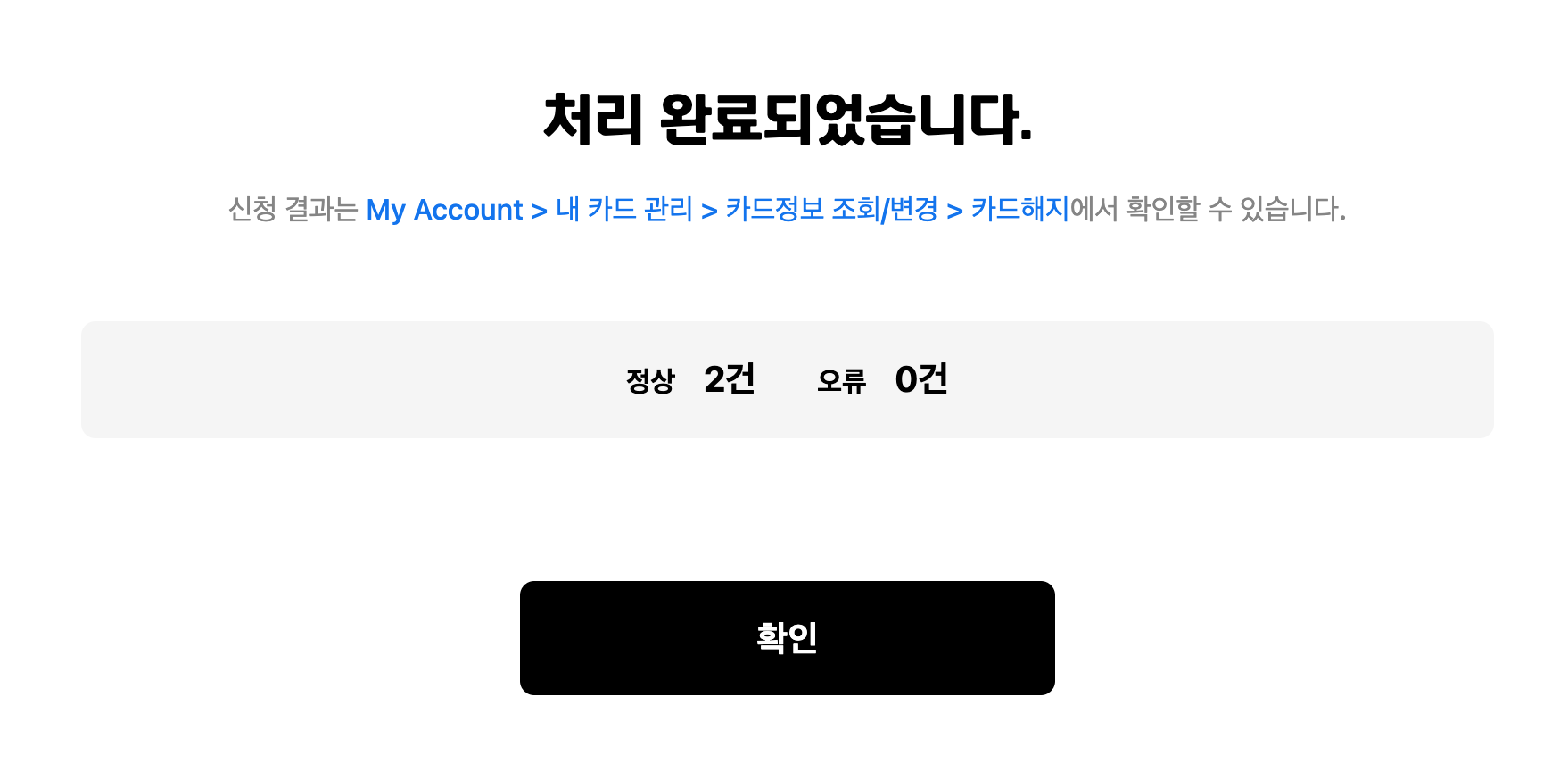 마지막으로 카드를 해지했습니다. 제가 가지고 있던 법인 카드는 2장이었는데, 한 장은 법인명으로 다른 한 장은 제 개인 이름으로 발급받았습니다. 만약 법인카드를 발급받으신다면 개인명의로도 발급받으시는 것이 좋습니다. 요즘은 모바일 어플이 잘 되어있어 신용카드를 각종 앱에 등록해 놓고 사용할 수 있는데, 이 경우 개인명의로 발급받은 카드만 등록이 가능한 경우가 많습니다. 저는 카카오톡에 등록해 놓고 기프티콘을 보내는 등으로 종종 사용했습니다.