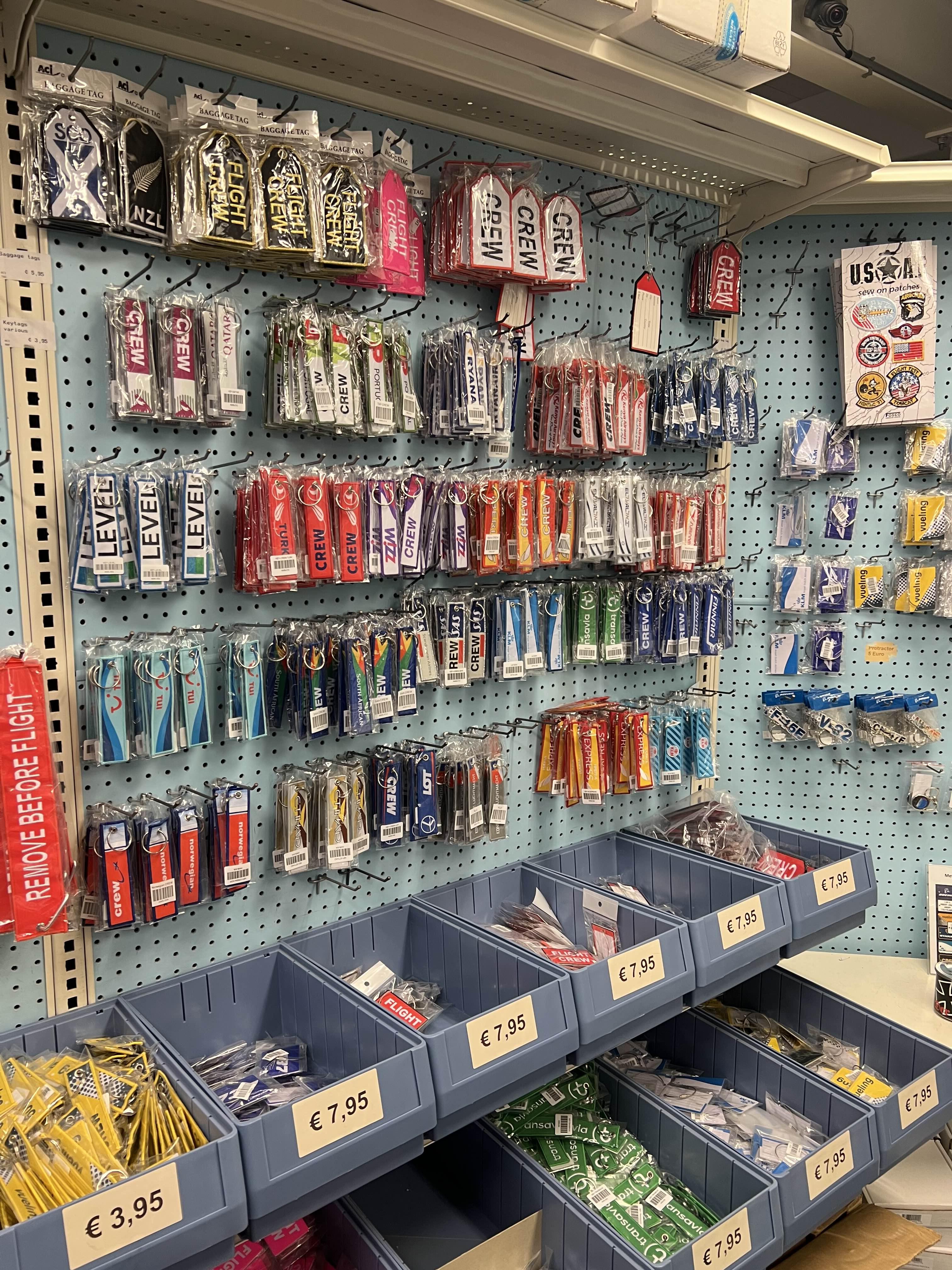 공항에서 조종사나 승무원들의 가방이나 사원증을 보셨다면 독특한 모양 또는 항공사 이름이나 로고가 박힌 크루 관련 물품들을 보셨을꺼에요. 왠지 모르게 멋져보이던 다양한 크루 용품들도 에비에이션 메가스토어에서 찾아볼 수 있었습니다. 다양한 항공사별로 각각 다른 로고와 디자인을 담은 용품들이 많아 구경하는 재미가 쏠쏠하더라구요. 아들의 가방에 달아줄 테그를 하나 골라봅니다.