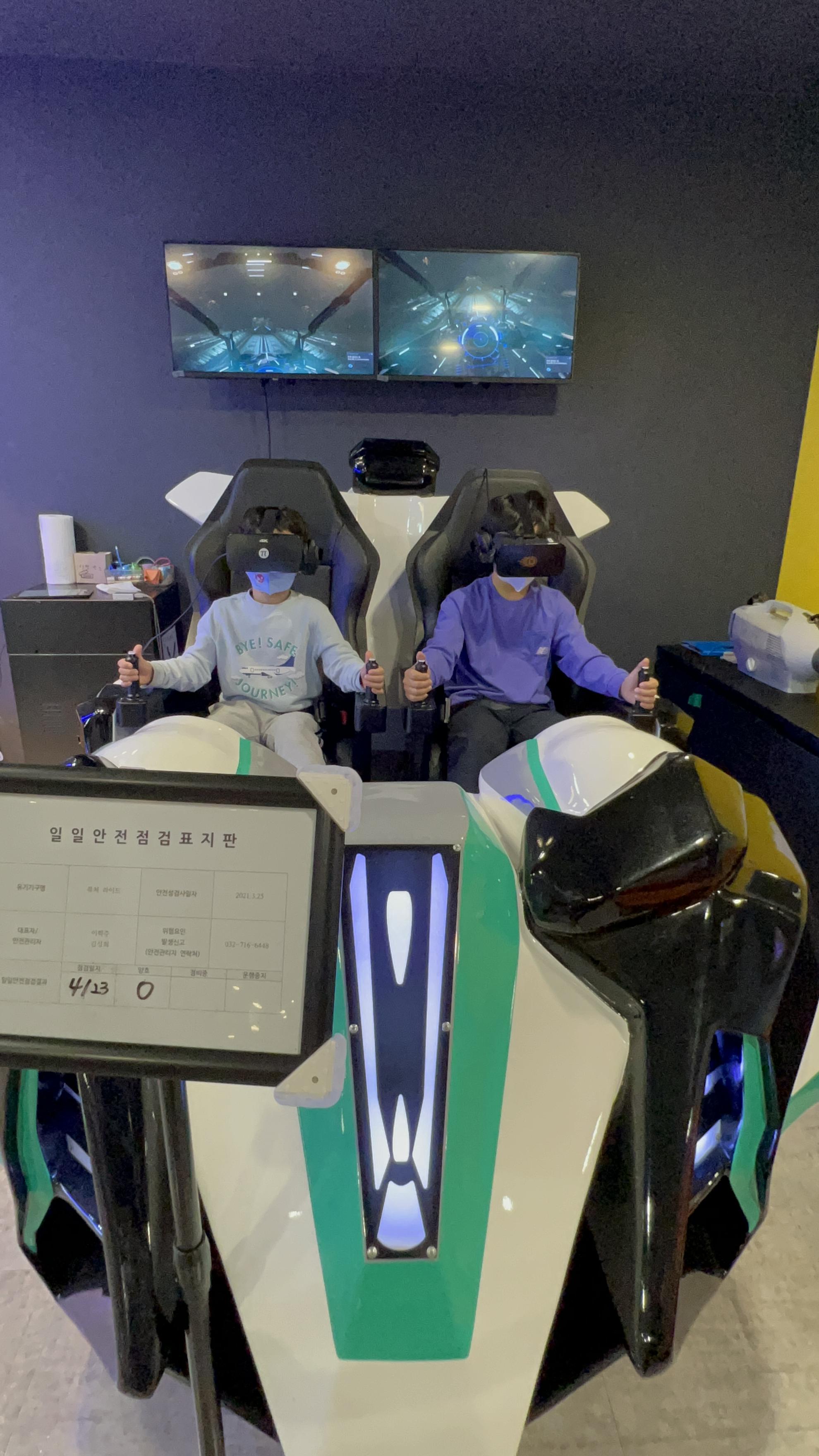 다른 곳에서는 가격 때문에 망설여져서 잘해주지 않던 VR 체험도 있었어요. 보통 한번 타는데 만원 이상이라 다른 곳에서는 한 번도 해준 적이 없었던 것 같은데 부천 로보파크에서는 VR탑승 가격이 3,000원/4,000원이어서 한 번씩 해 주었더니 아이들이 너무 좋아하네요.