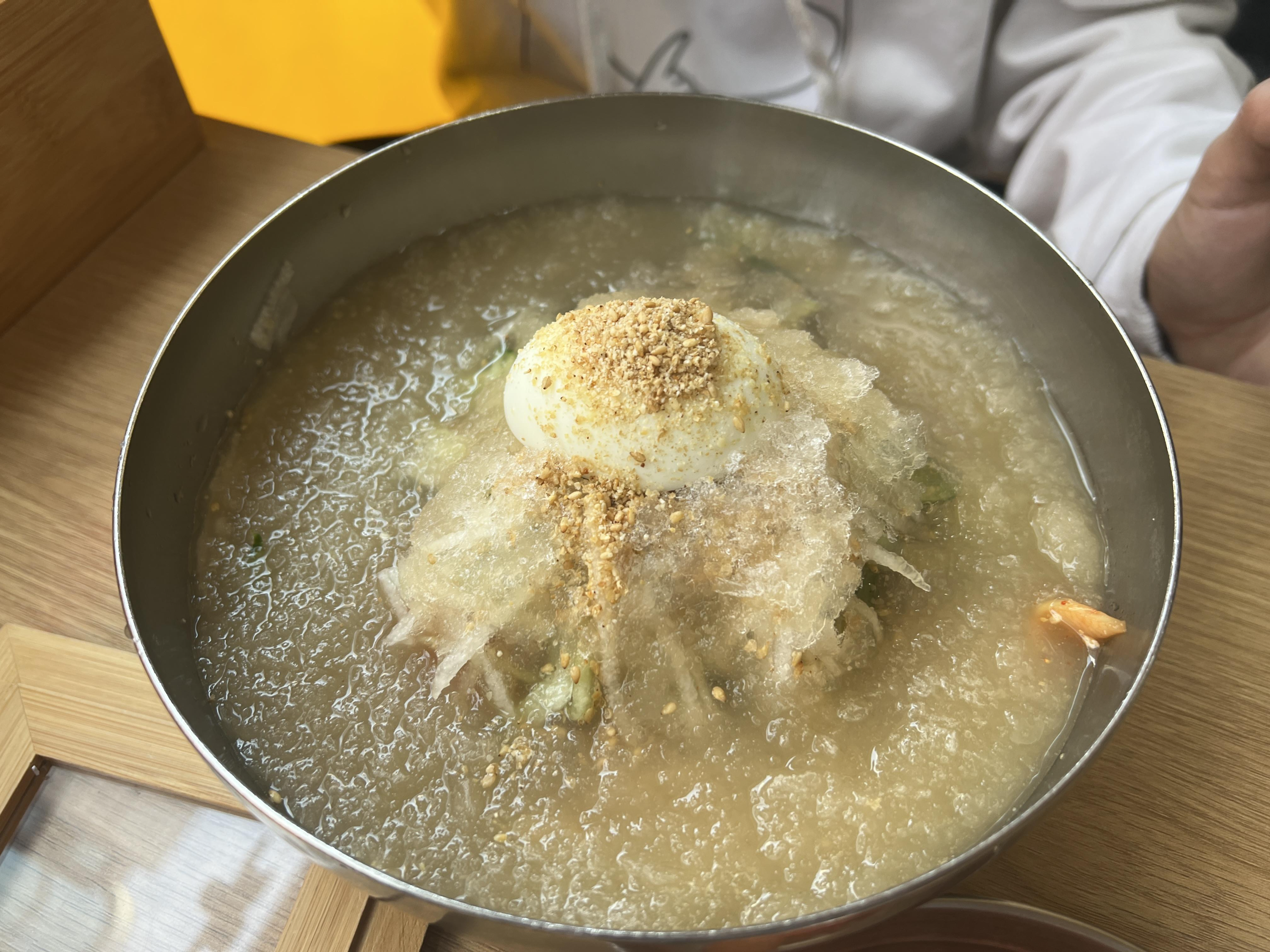 물냉면에도 매운 양념이 들어가 있기에 혹시라도 저처럼 매운 것을 잘 못 드시는 분들이라면 미리 양념을 빼거나 따로 덜어달라고 하시는 것도 좋을 것 같습니다. 아니면 비빔냉면을 주문해서 양념을 조금 덜어내시고 얼음 육수를 원하시는 만큼 부어서 먹어도 괜찮고요!