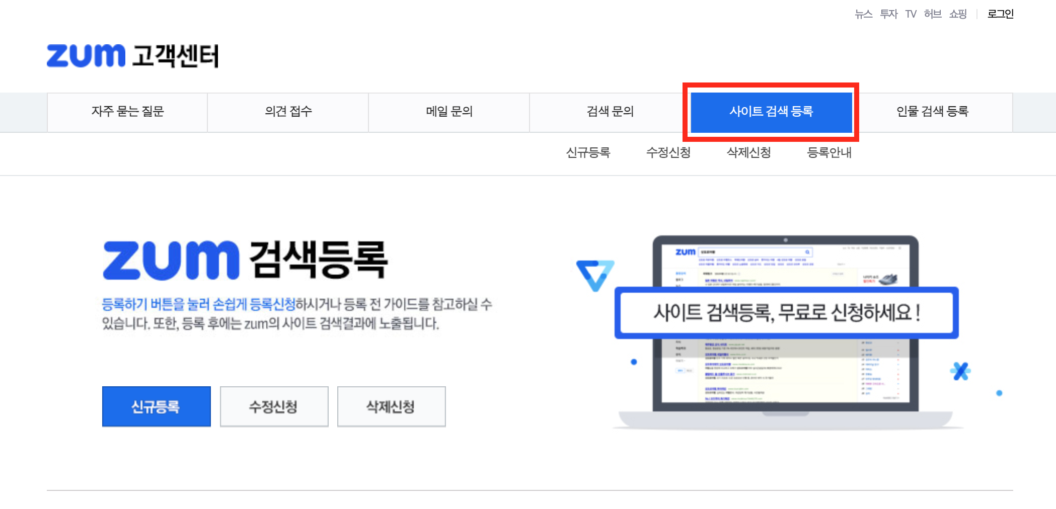 사이트 상단에 [사이트 검색 등록] - [신규등록]으로 들어갑니다.