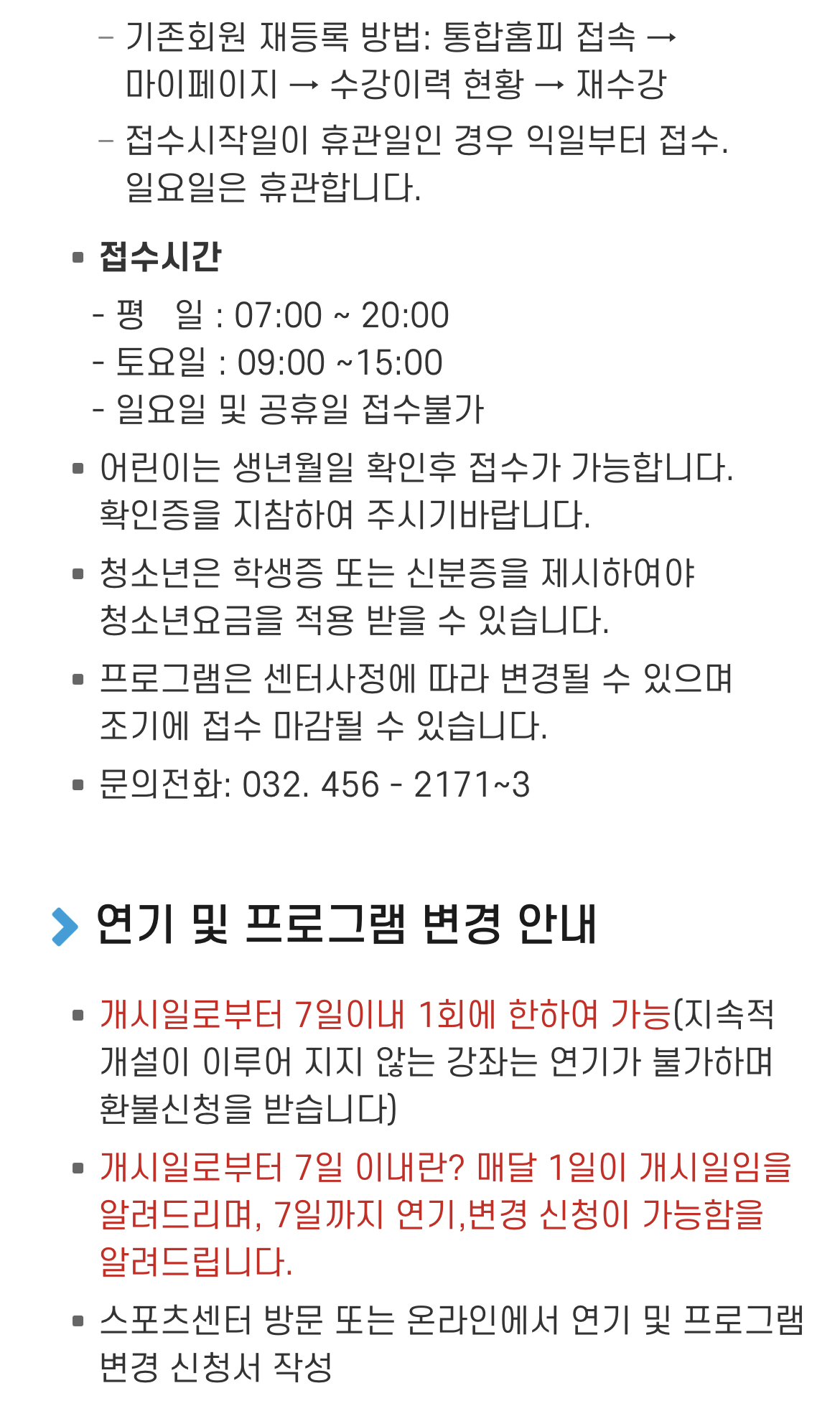 삼산월드체육관의 어린이수영은 초등학교 1학년부터 가능합니다. 예전에 문의했을 때(직접 데스크에 물어봄) 7세여도 초등학교 1학년이면 접수가 가능하고 8세여도 초등학교 1학년이 아니면 접수가 불가능하다고 했었는데, 지금은 아예 홈페이지에 들어가면 만7세 이하면 접수 불가능하다는 메시지가 뜹니다. 저희 둘째아이가 7월생이라 7월에 접수를 할 때는 나이가 되지 않아 접수가 되지 않는다고 하더라구요. 그래서 데스크에 전화했더니 잠시 7월 생일을 한달 당겨 6월 생일로 바꾸어주었답니다.