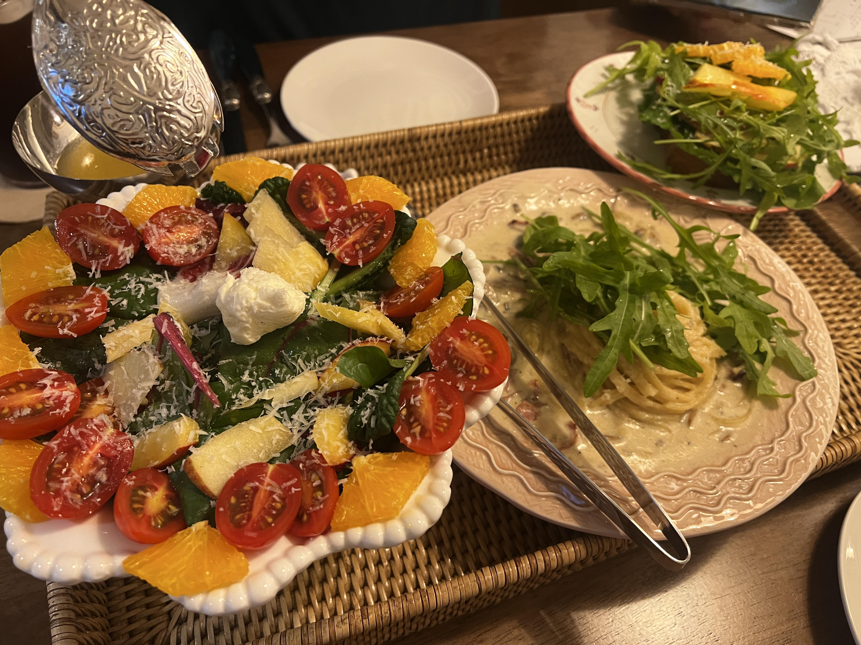아무래도 가장 중요한 것은 음식이겠죠? 제철과일 셀러드와 버섯 파스타, 오픈 샌드위치가 포함된 세트였는데 가격은 37,000원이었네요. 한끼 식사를 매번 이렇게 먹을 수는 없지만 가끔 기분 내고 싶을 때, 아이들 없이 간단하게 와서 친구들끼리 먹고 커피한잔 마시고 헤어지기 딱 좋은 장소가 아닌가 싶습니다.