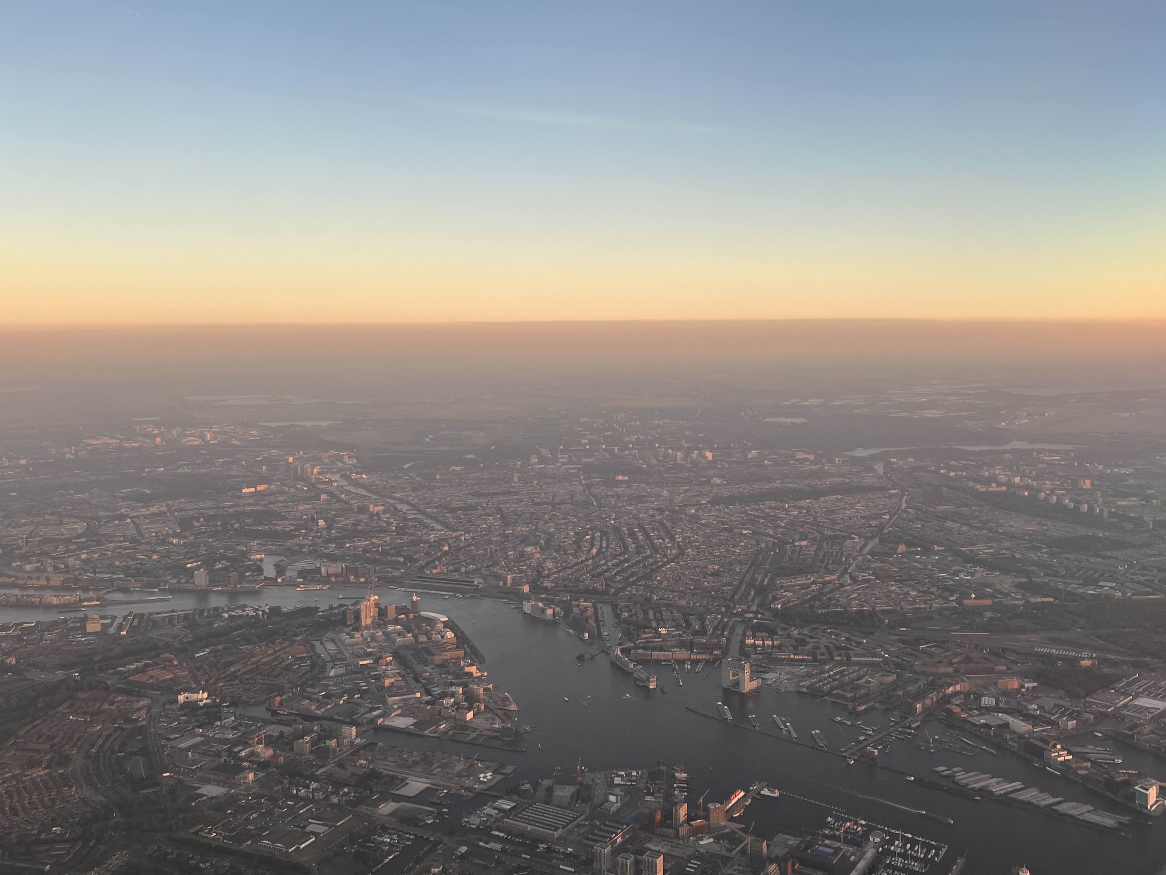 암스테르담에서의 하루가 순식간에 지나가고 다시 비행기에 오릅니다. 비행기 위에서 찍어본 암스테르담의 시내 풍경이 참 멋지네요. 여기서 중앙역은 어디일까요? 중앙 역을 단번에 찾은 당신, Excellent를 드립니다!