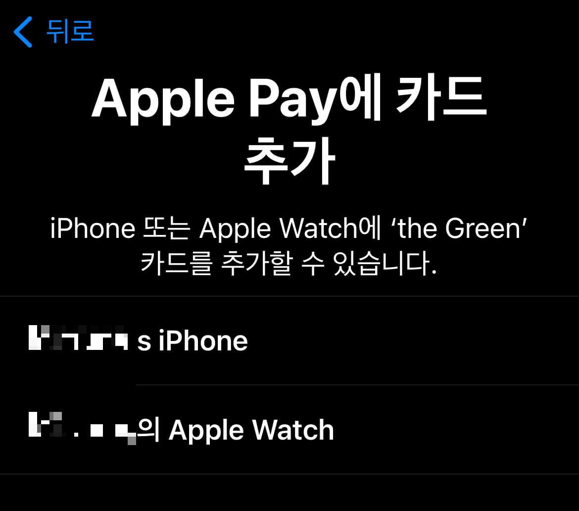 애플워치에도 애플페이 등록 완료!