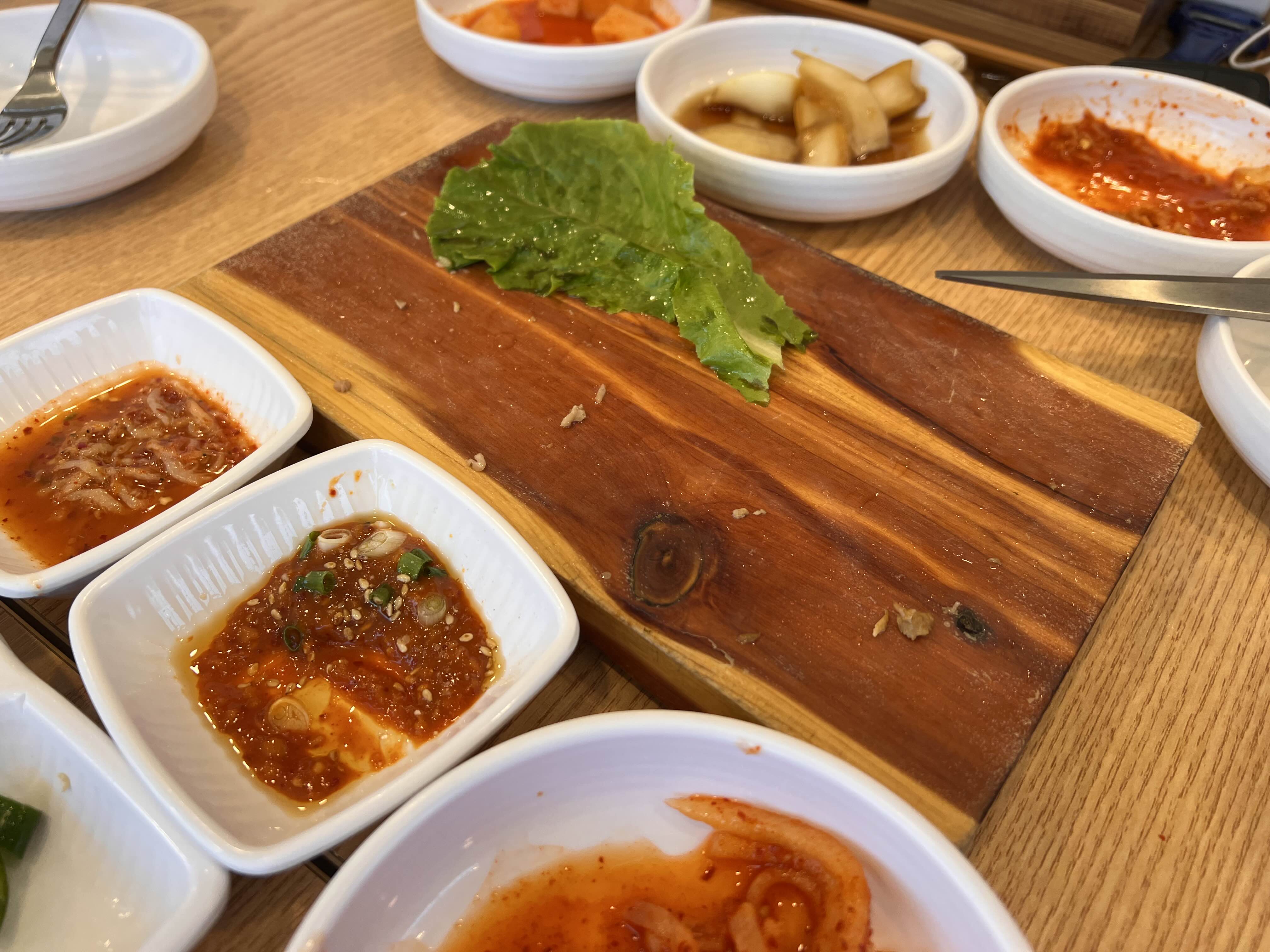 먼저 국수집에 가면 꼭 시켜보는 돔베고기를 주문해봅니다. 국수를 주문한지라 반절짜리를 주문했더니 17,000원이었고, 엊그제 먹었던 삼대국수의 돔베고기보다는 조금 더 얇습니다. 야들야들한 고기는 나오자마자 배가 고프신 아드님들이 순삭합니다.