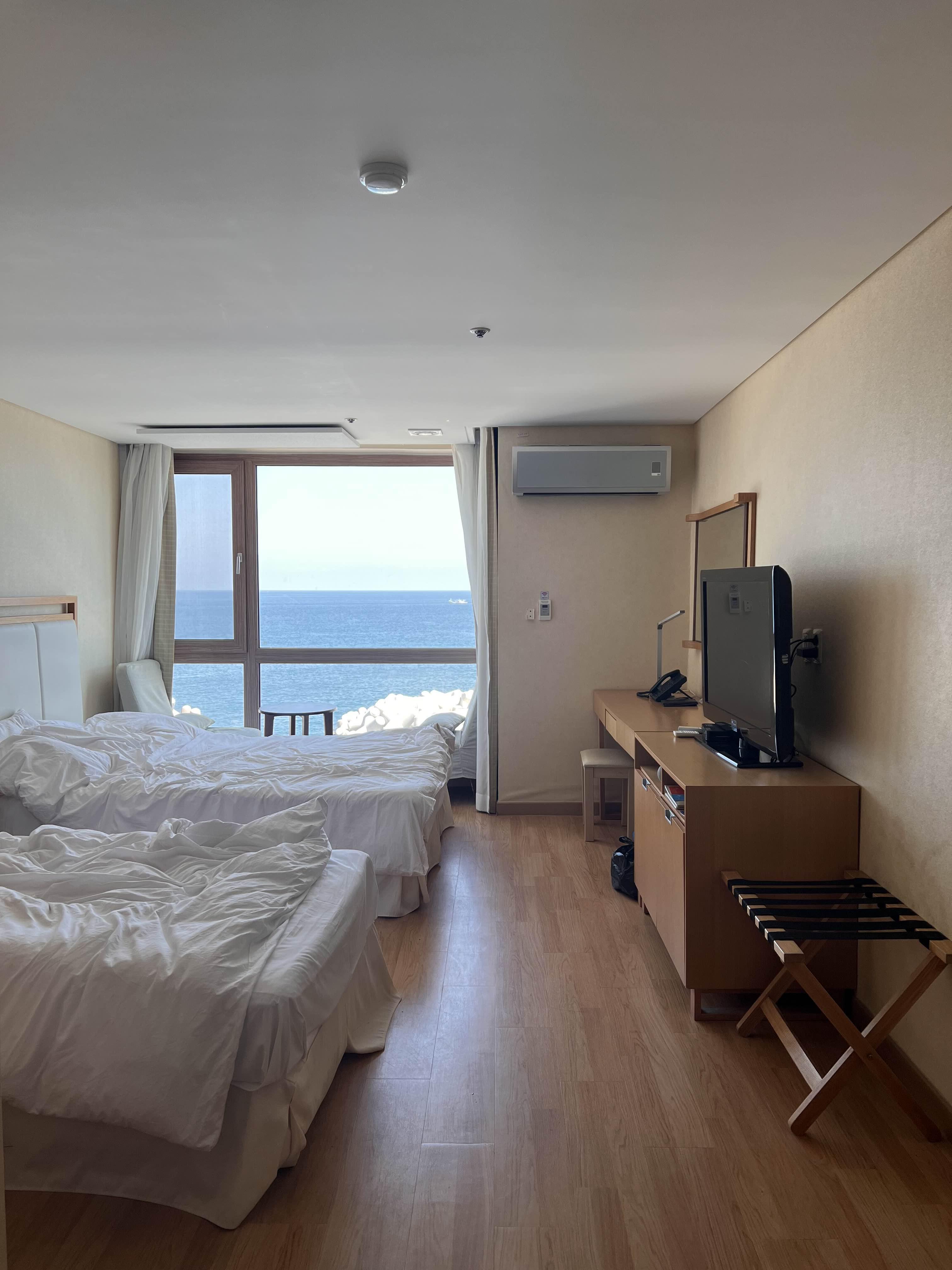 며칠동안 우리를 편안하게 묵게 해 주었던 오션스위츠호텔에서 떠납니다. 전면에 바다가 보이는 정말 예쁘고 멋진 방이었어요. 룸컨디션이 그리 좋다고 할 수는 없지만(특히 에어컨 소음이 너무 심해요) 경치도 너무 좋고 편하게 잘 지냈습니다.