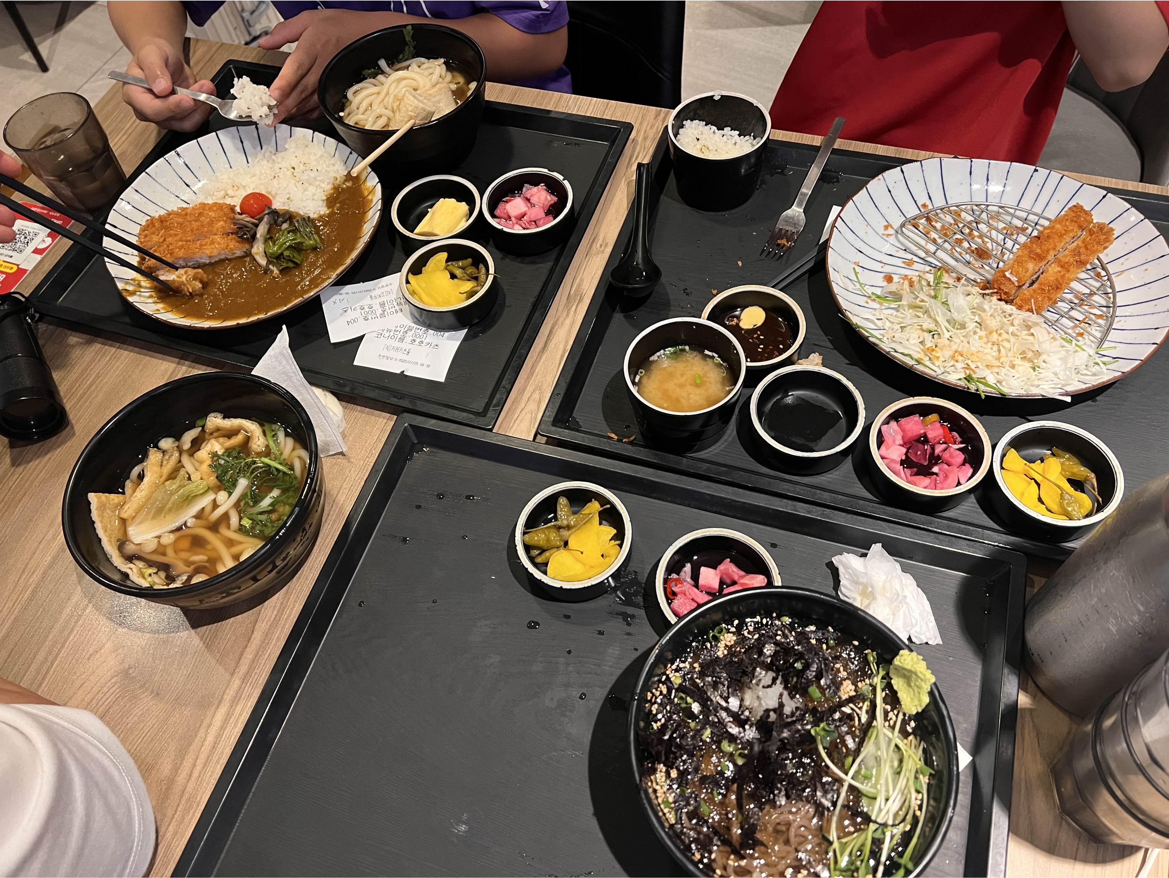 늘 가는 4층 푸드코트에 들러 간단한(?) 식사를 합니다. 분명 간단하게 먹으려고 했는데 남편께서 사용 가능한 식권을 모두 사용할 각오로 오셨다며 1인 1 메뉴를 시전 합니다. 이제 초4는 1 메뉴가 그렇다고 쳐도, 초1에게는 조금 힘들지 않을까 싶었는데 남편이 생각해서 사준다고 한 것이니 그냥 먹기로 합니다.