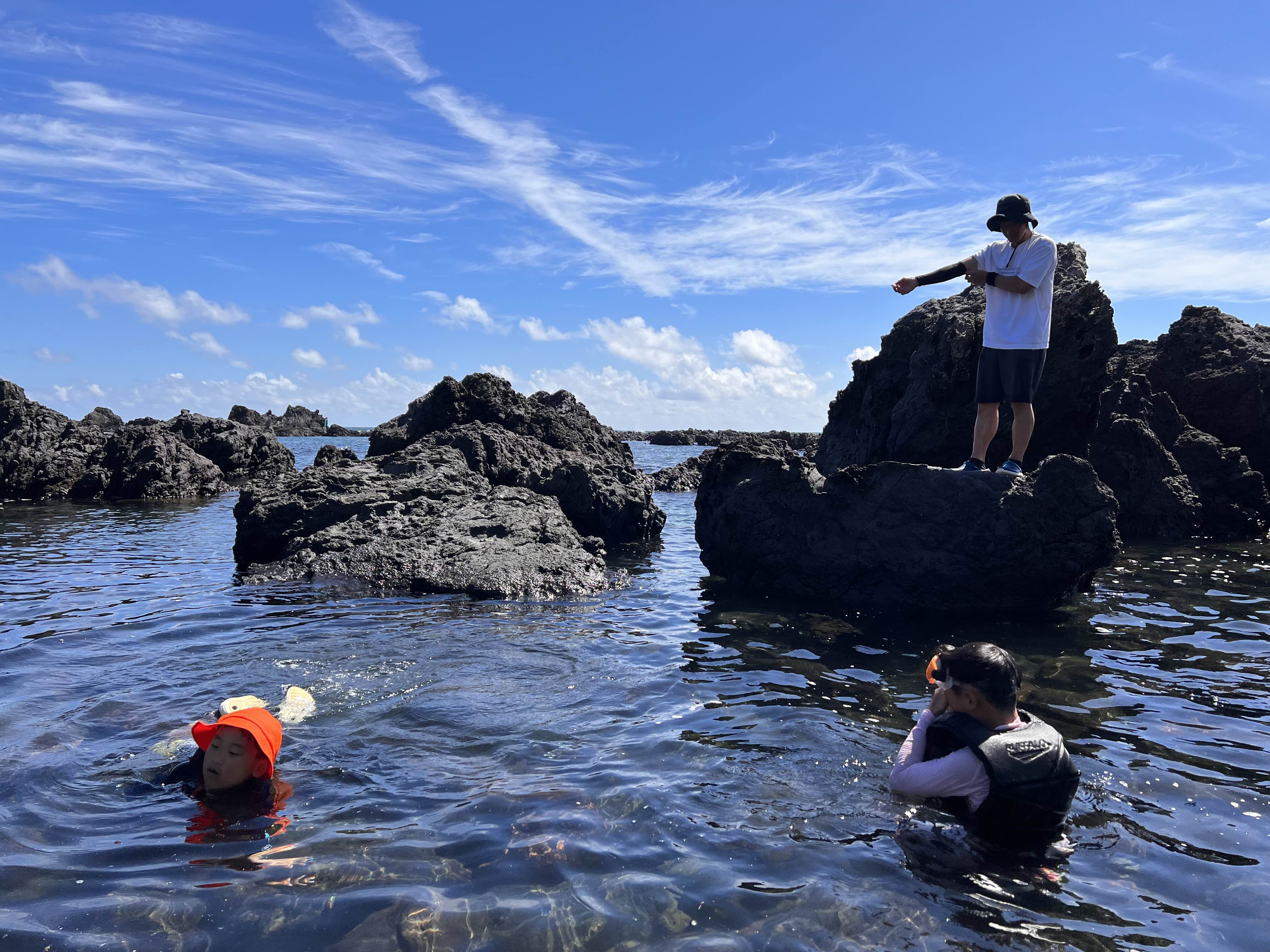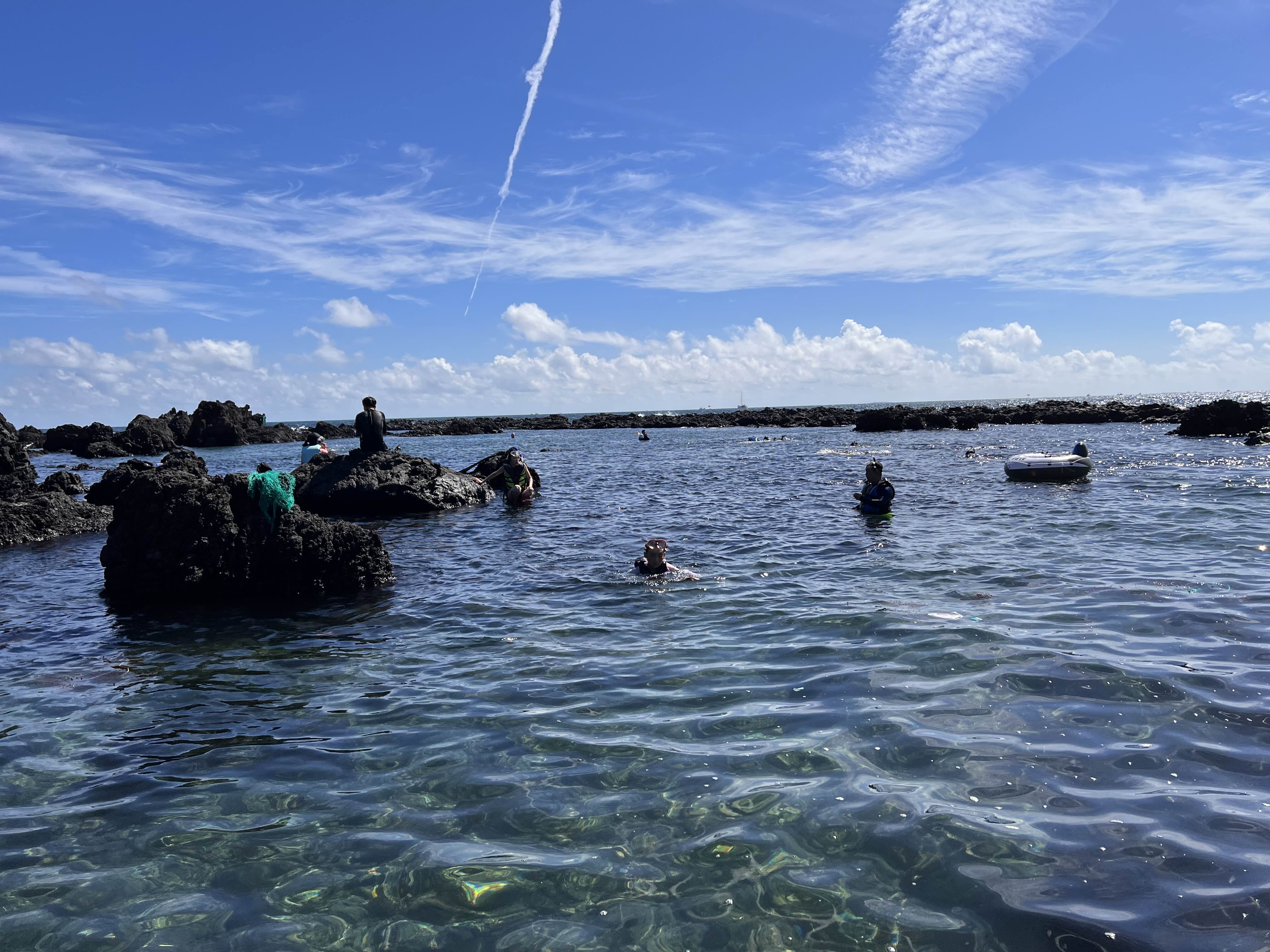 산에 갔으니 바다에도 들어가야 한다는 아이들의 강력한 주장에 따라 스노클링 명소에 또 다시 가게 되었습니다. 아이들은 여기가 정말 재미있나봐요. 제주도에 있는 동안, 이곳에만 4번 이상을 왔던 것 같아요. 이날은 날씨가 좋아서인지 사람들이 좀 있는 편이었습니다. 사람이 많다고 느껴질 때에도 다른 붐비는 곳보다는 훨씬 적으니 놀기에는 딱 좋은 곳 아닌가 싶습니다.