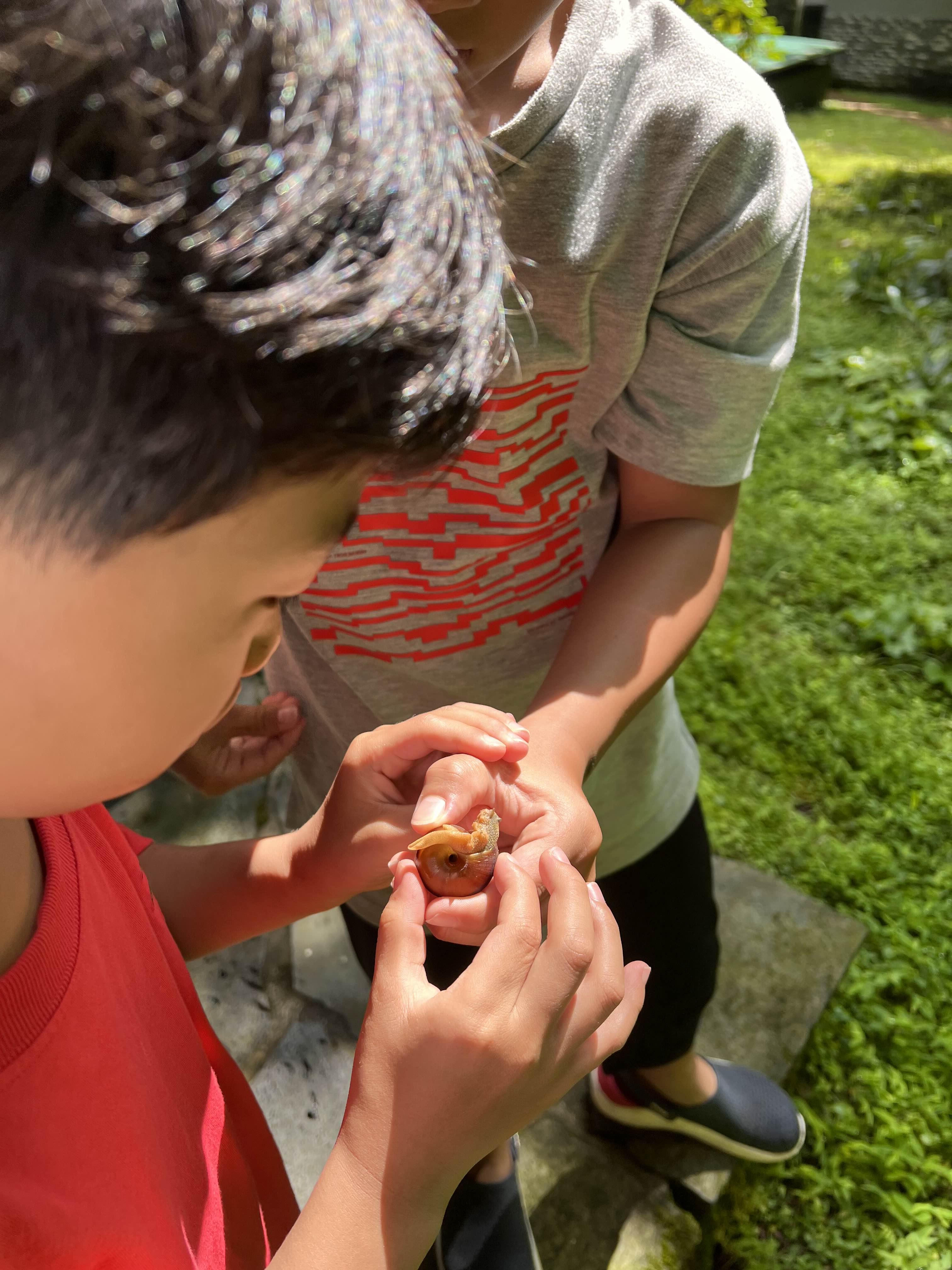 바다도 좋지만 자연휴양림에서 맞는 아침도 즐겁습니다. 이상하게 서귀포 자연휴양림에는 까마귀가 많아 아침부터 까마귀소리를 알람삼아 기상하니 문 앞을 왕달팽이가 지키고 있습니다. 어찌나 큰지 자기 등껍질 속으로 들어가지도 못합니다. 한참을 관찰하다가 이끼가 낀 곳에 살포시 놓아주고 짐을 쌀 준비를 합니다.