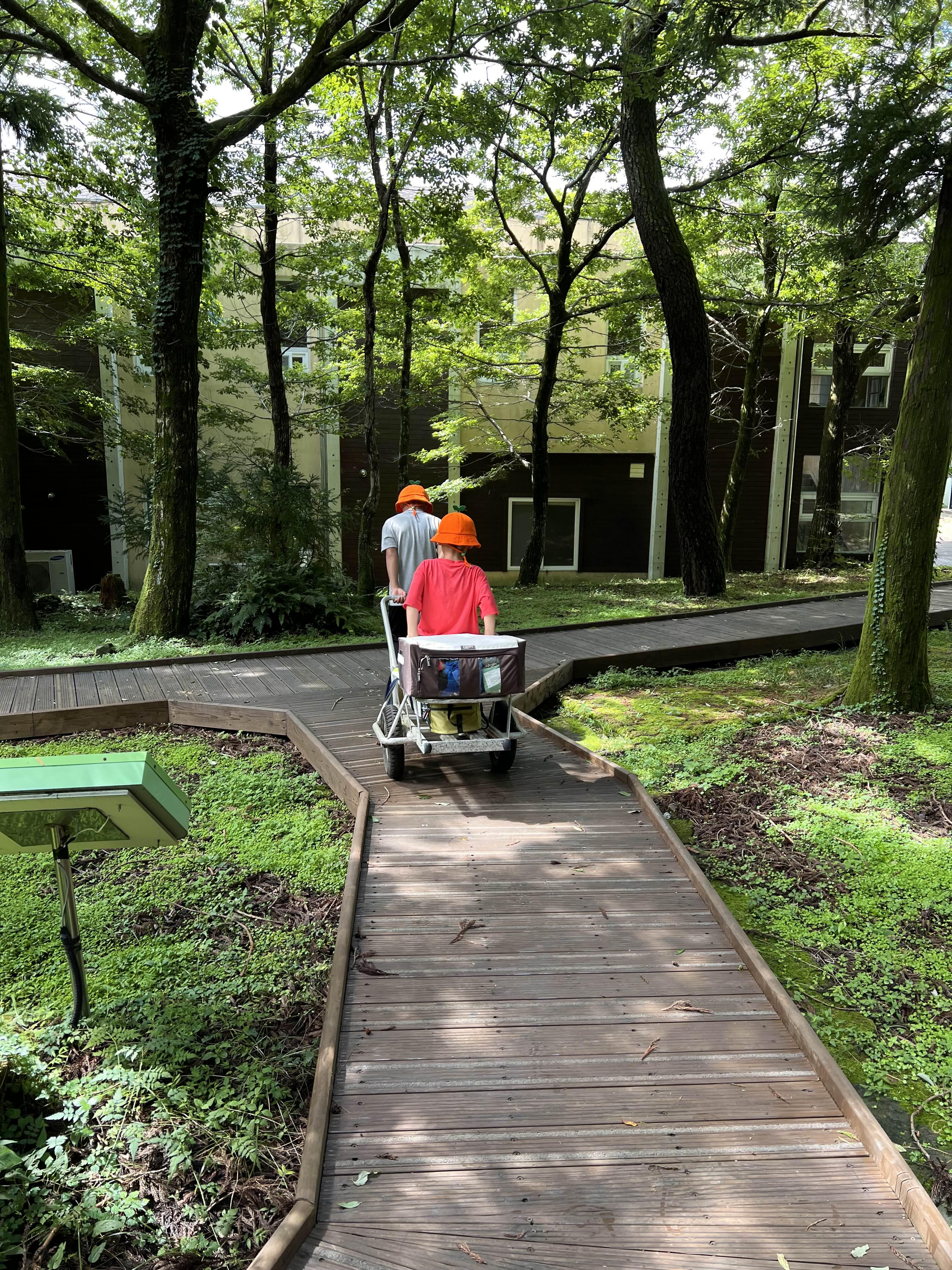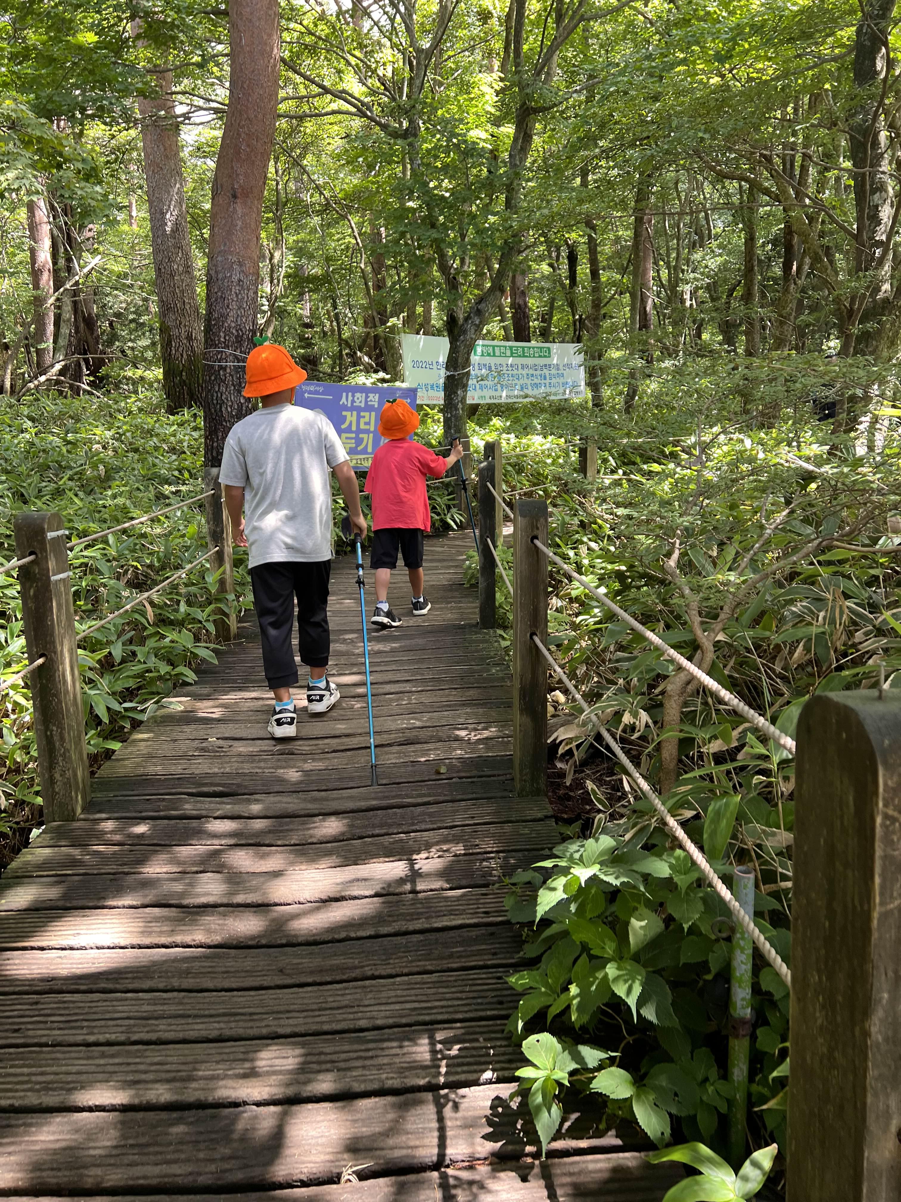 전날 짐을 가져왔던 손수레를 이용해서 다시 차로 짐을 실어냅니다. 이럴 때는 아들이 둘인 것이 참 듬직하고 좋네요(비록 둘째님은 짐처럼 수레를 타고 가고 있지만요). 적당히 짐을 싸고 난 후, 남편이 가고싶다던 한라산 영실코스를 가보기로 합니다.