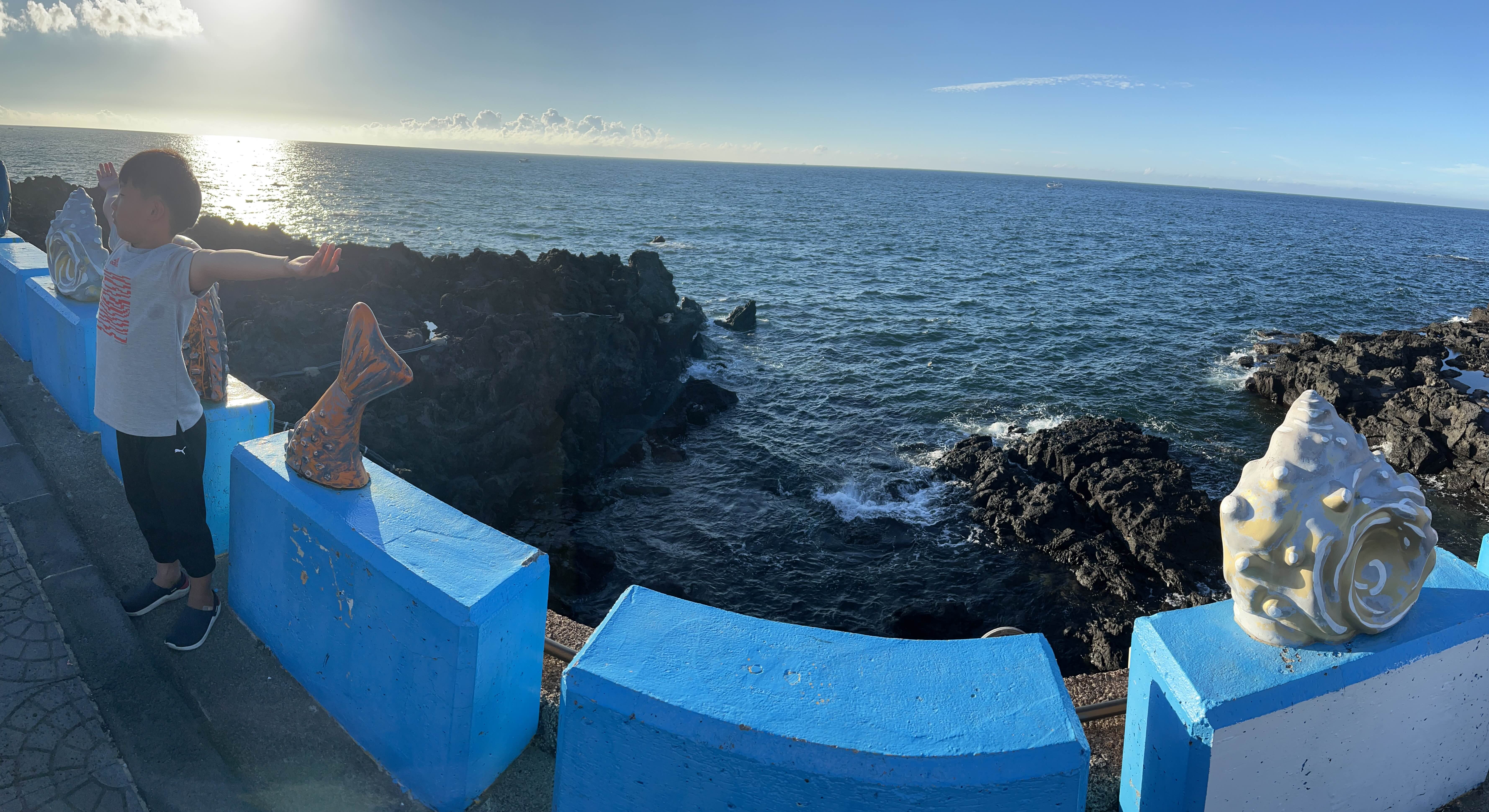 제주도는 길가에 있는 어린이 놀이터 & 공원도 이리 멋집니다. 바닷가를 끼고 이렇게 멋진 놀이터라니, 들르지 아니할 수가 없지 않습니까. 마침 둘째님 화장실이 급하다고 하여 바로 옆에 있는 화장실에 들를 겸, 놀이터에서도 잠시 놀아봅니다.