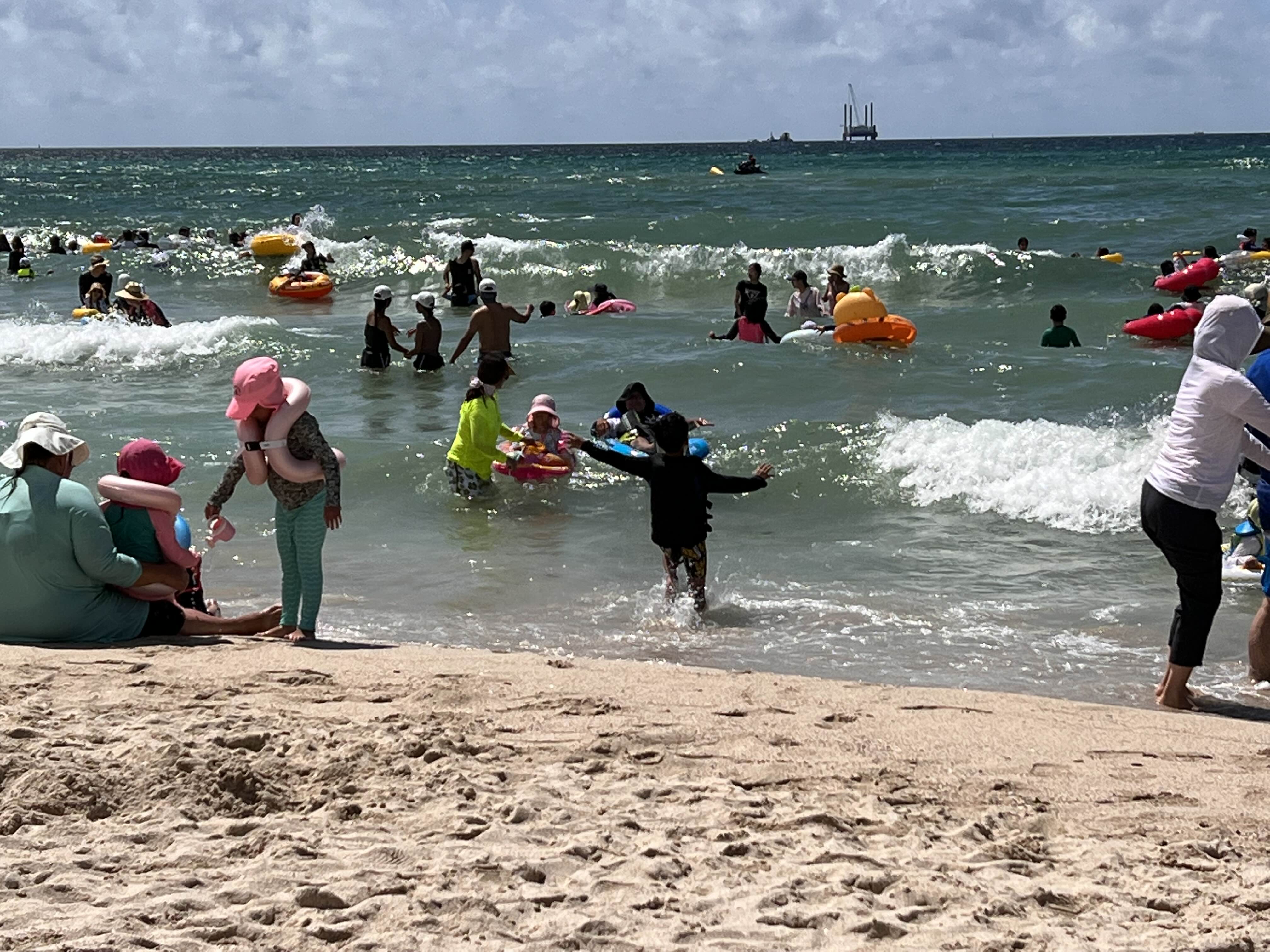 다 컸다고 생각했는데 아직 아가인지 모래놀이를 그렇게 좋아합니다. 시원한 바다에 풍덩 들어갔다가, 예쁜 조개도 하나 잡아와서 엄마 손에 올려주고 모래놀이에 집중합니다. 이날은 날씨가 좋아서인지 사람들이 바닷가에 많이 모여들기 시작했는데, 보통 9시 즈음에는 사람이 별로 없다가 12시~1시 사이에 피크인 것 같아요. 해수욕장에 좋은 자리를 잡으려면 9시쯤에 도착하시면 좋을 것 같습니다.