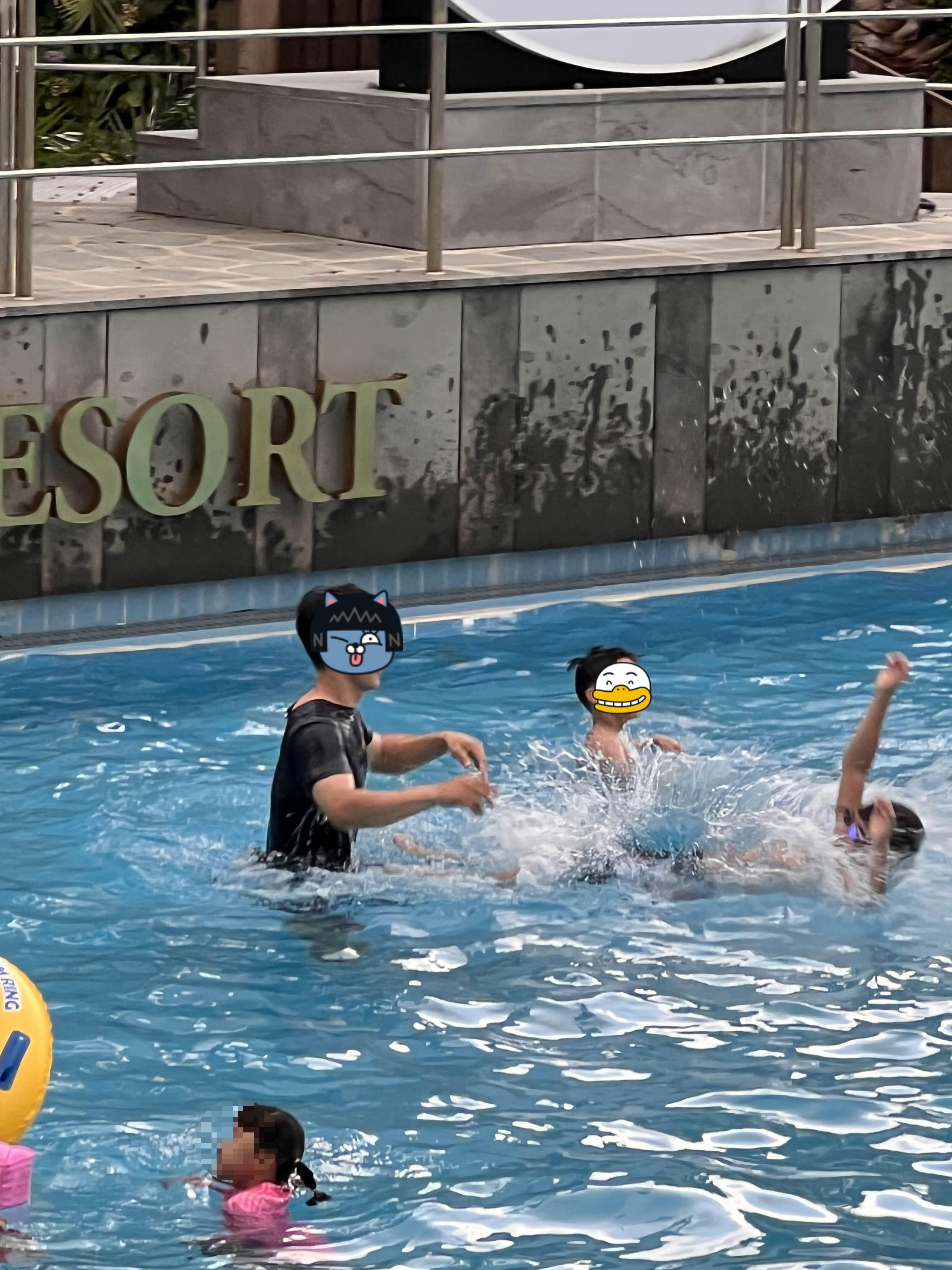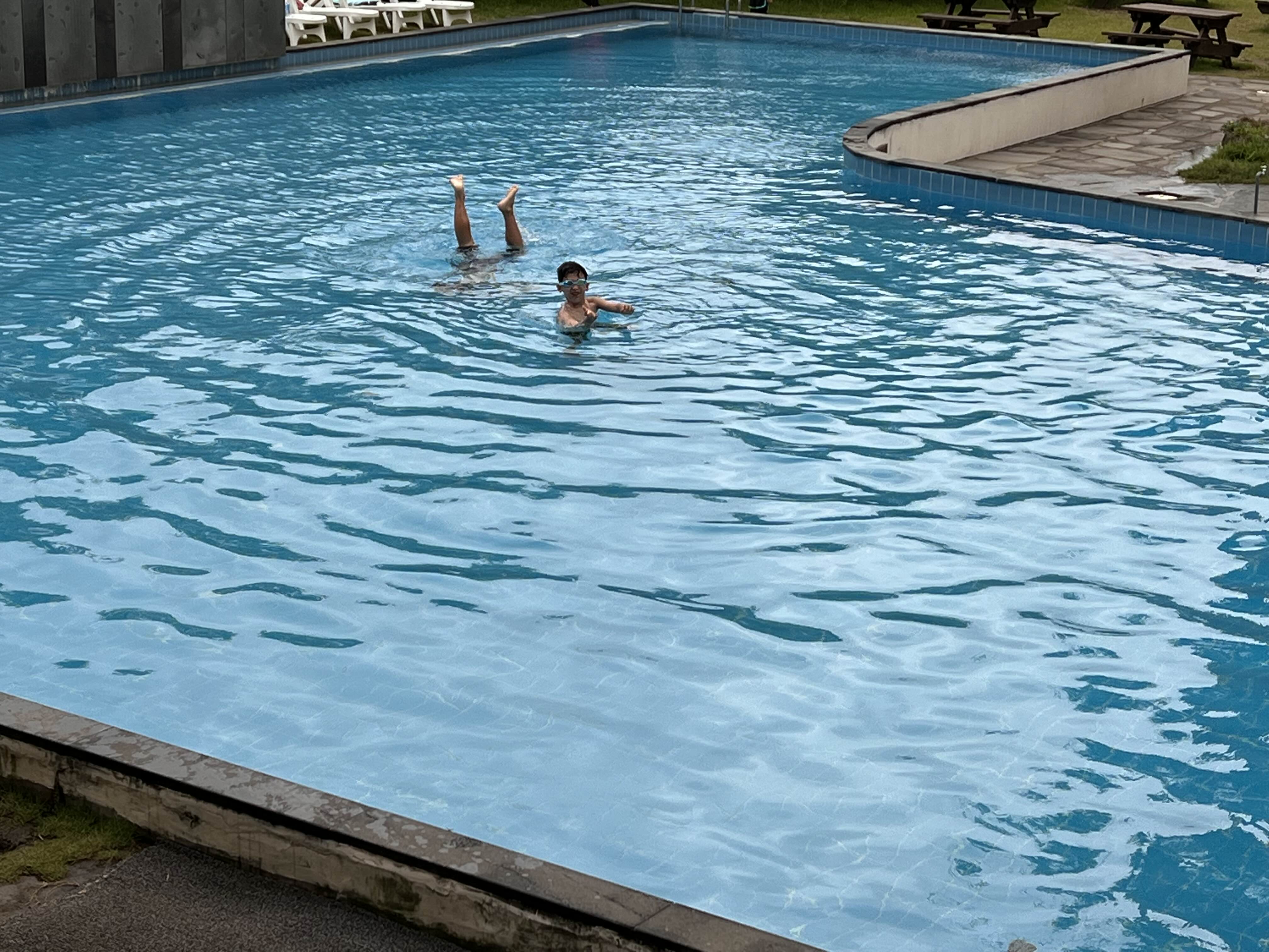 분명 피곤한 것 같았는데, 돌아오자마자 수영장으로 돌진합니다. 수영복 그대로 뛰쳐나가 수영장 앞에서 간단히 샤워하고 모래를 씻어내고 바로 들어간 수영장에서 2시간을 더 놀고서야 하루가 끝났습니다. 정말 아이들 체력은 따라갈 수가 없는 것 같아요. 함께 놀아준 아빠에게도 브라보를 보내봅니다.