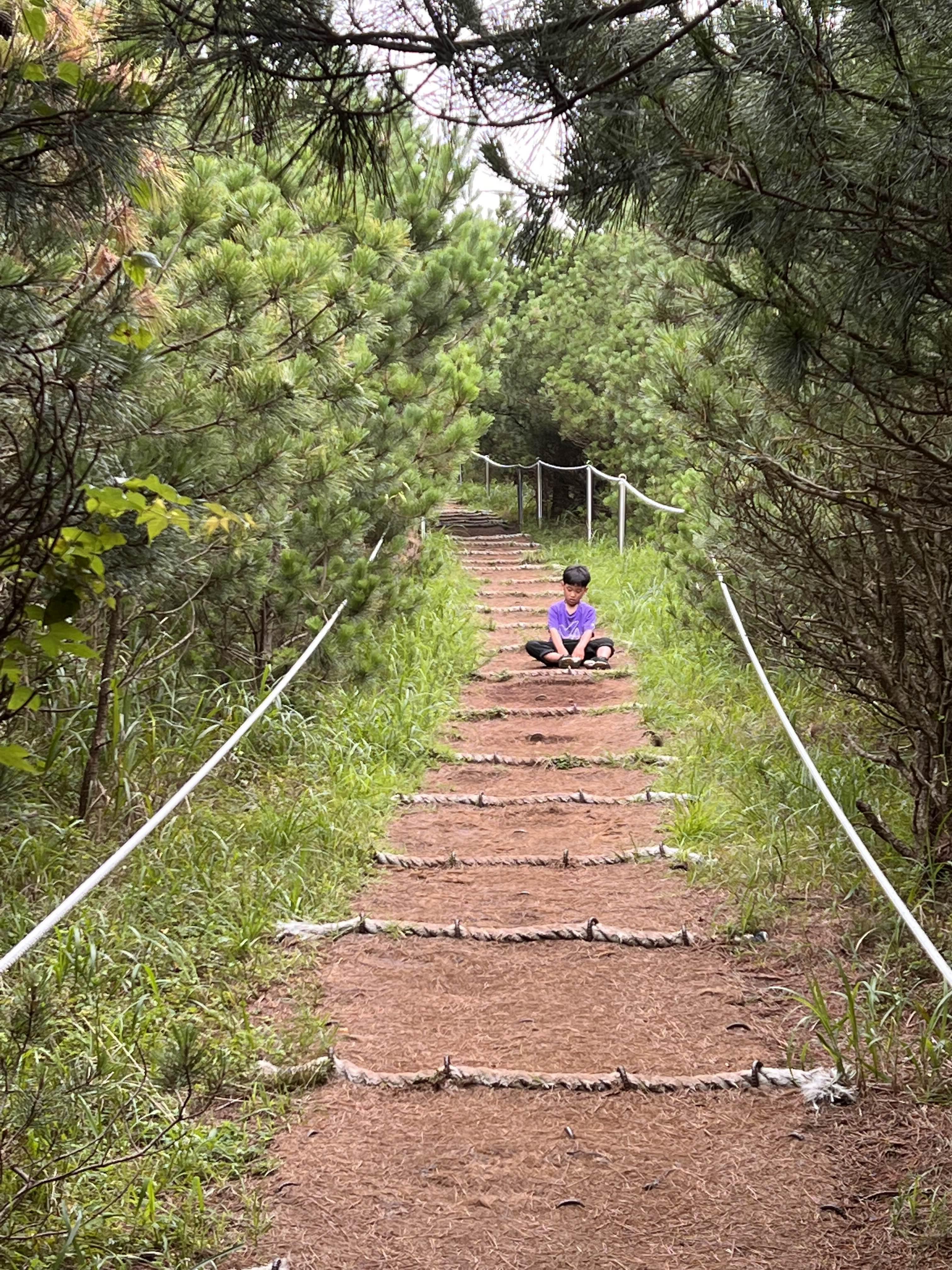 날씨가 생각보다 습하고 더워서 텀블러에 시원한 음료를 가득 챙겨갔음에도 불구하고 둘째님은 드러누워버립니다. 주변에 정말 아가아가한 아이들도 용감하게 올라가는데 초1인 둘째님이 길 한가운데 드러누워버리니 조금 챙피한 기분이 들어 그냥 두고 가기로 합니다(그랬더니 열심히 쫒아오네요).