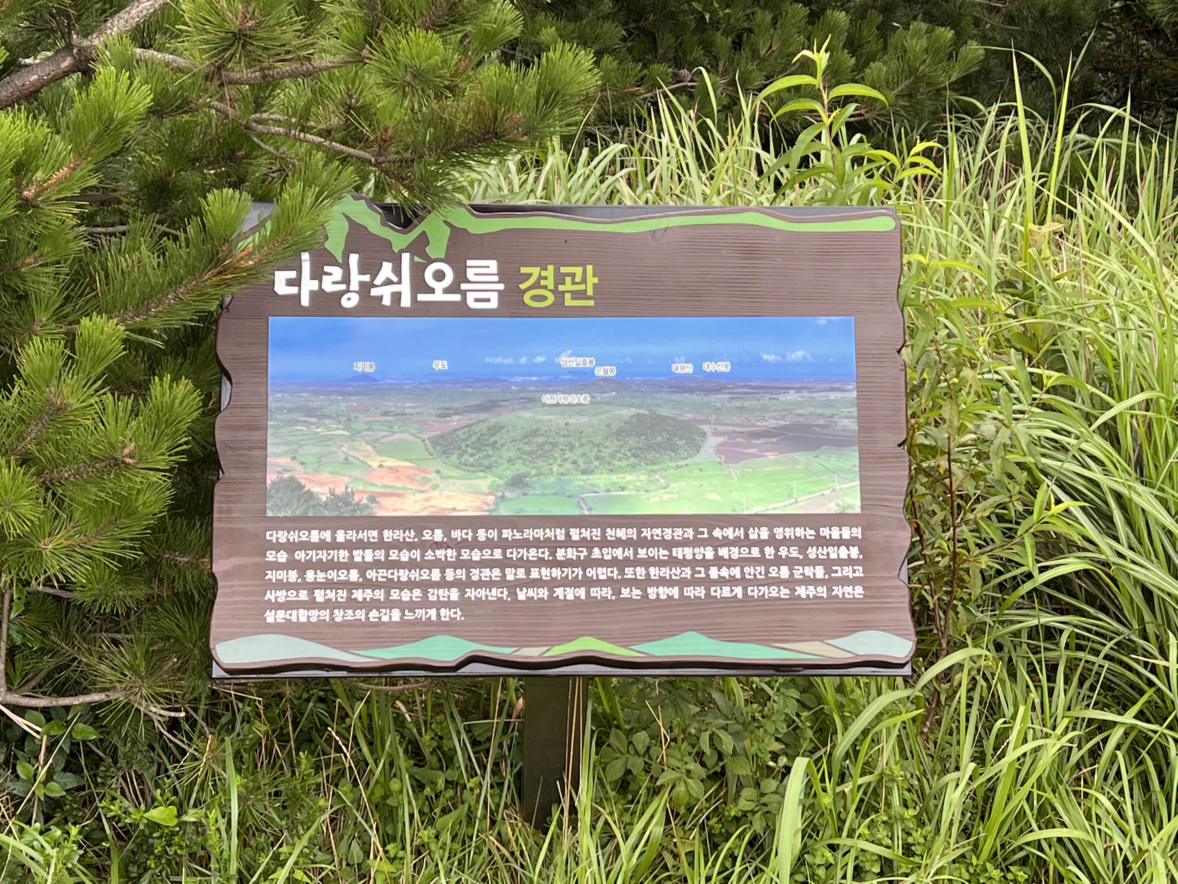 어느덧 정상에 온 승리자들. 마그마 분출로 생긴 분화구를 보며 바람을 맞으니 참 시원하고 좋습니다. 올라올때는 그리도 힘들었는데 올라오고 나니 기분은 좋네요. 날이 조금 흐려서 더 수월하게 올라왔는지도 모릅니다. 아무래도 나무가 울창하거나 하지는 않아서 쨍쨍한 날 오기는 힘들 것 같아요. 다랑쉬오름은 올라갔다가 내려오기까지 약 1시간 반정도 걸렸습니다.