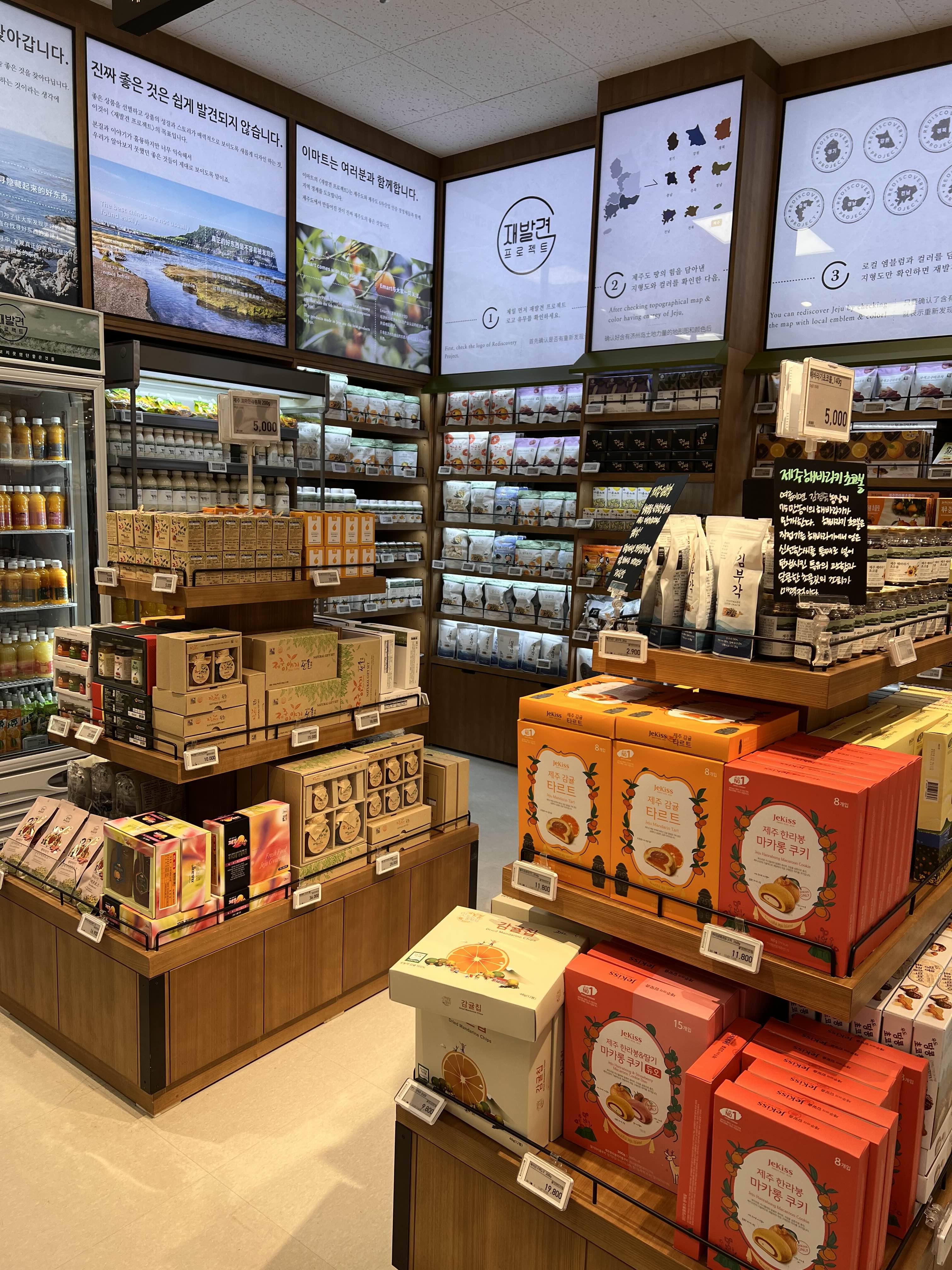 이마트는 사실 저희 동네 이마트랑 별다를 것은 없었어요. 다만 제주도답게 제주 특산물을 전시해 놓은 공간이 있었고, 우도땅콩으로 만든 제품들도 눈에 띄었네요. 특별히 산건 없었는데, 아이가 좋아하는 과자 2봉지와 불고기 한팩 정도 구매해서 숙소로 다시 돌아옵니다.