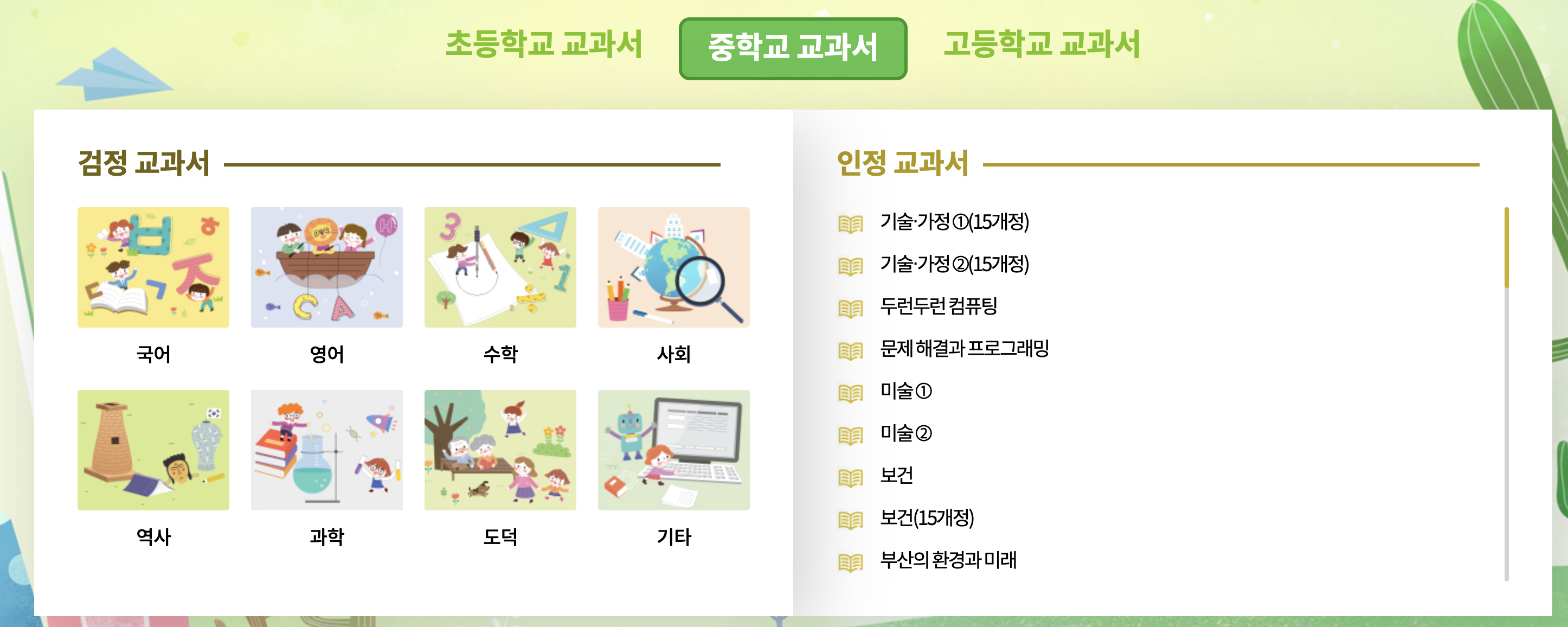 중학교 교과서 구입하기 | 검인정 쇼핑몰