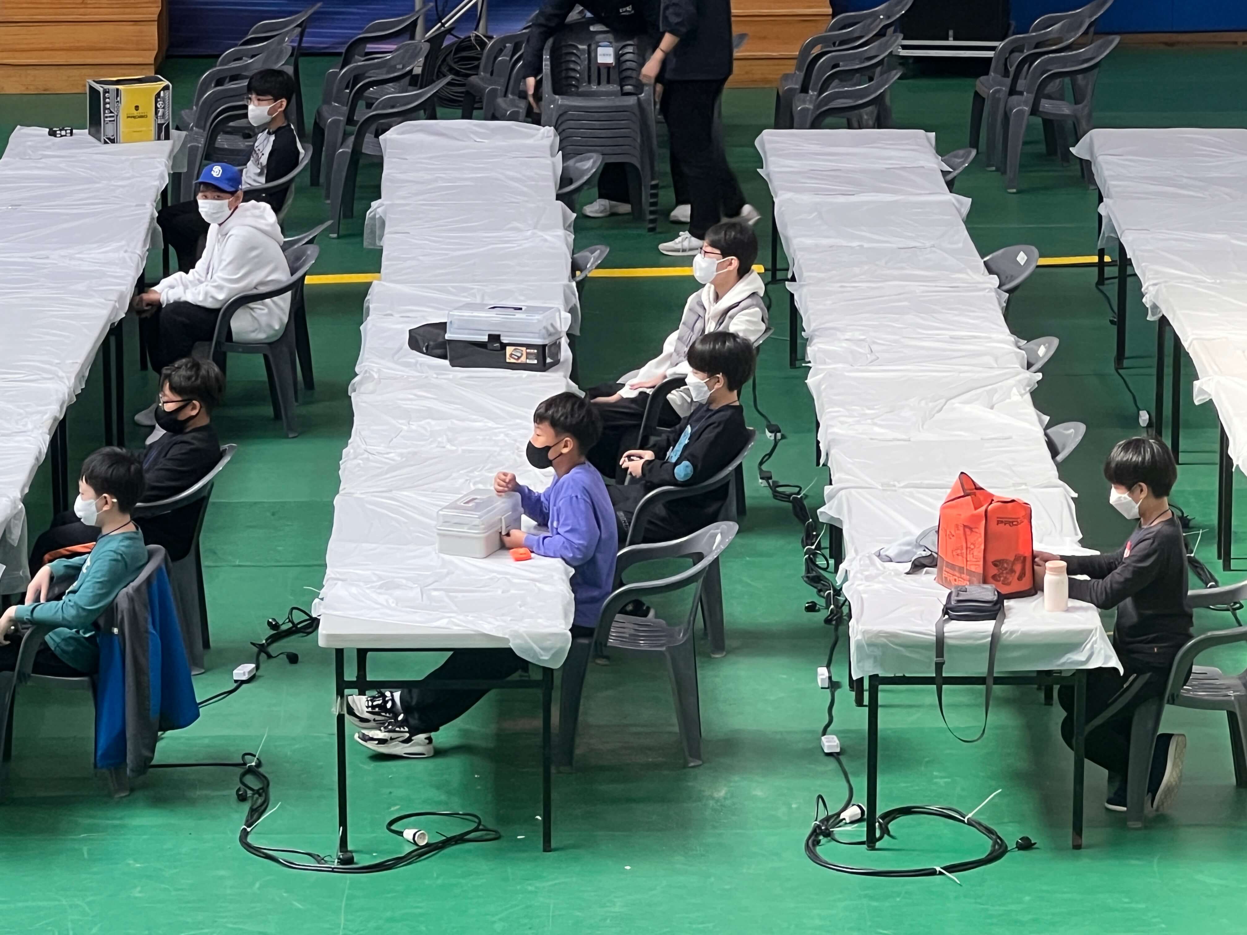 대회에 참여한 아이들을 보니 총 100팀이 참가할 수 있는 대회이지만 딱 15명만 참여했더라고요. 아직 코로나19의 여파가 일상에 미치는 영향이 지대한가 봅니다. 생각보다 적은 참가인원에 수상을 할 수 있을 것이라는 기대를 살짝 해 보았지만, 과제로 제시된 로봇 제작이 생각보다 쉽지 않더라고요. 아이들 모두 약 40분 정도 걸려서 첫 로봇을 만들어냈고, 앞 테이블에 놓인 규격상자에 로봇을 넣어보거나 실제 구동을 해 본 후에 크기 등등을 조정하는데 나머지 시간을 보냈습니다.
