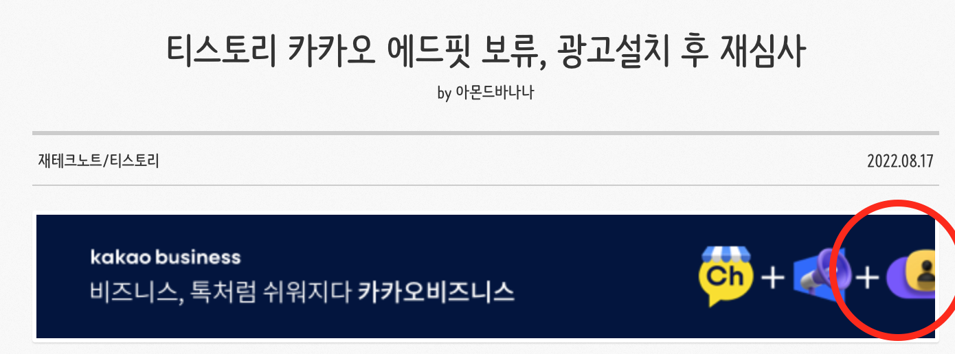 광고 영역에 AdFit 광고가 아닌 'kakao AdFit' 문구가 확인되어 보류되었습니다