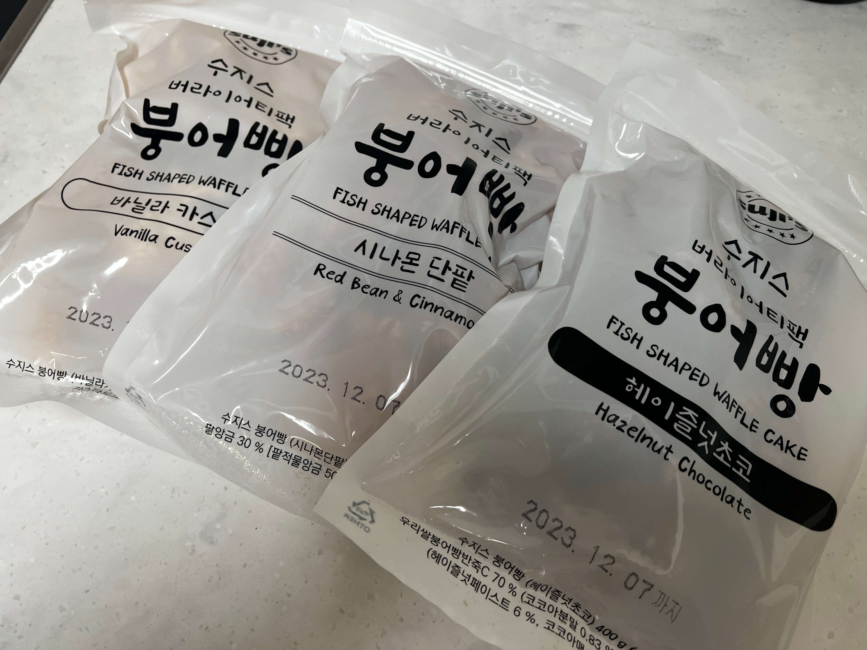 이번에 방문해보니 역시 미니붕어빵이 있더라고요. 수지스 버라이어티팩 미니붕어빵인데 특이하게 슈붕, 팥붕, 초붕(초코붕어빵)이 모두 들어있습니다. 아직 먹어보지는 않았는데, 먹어보고 다시 포스팅해보도록 하겠습니다.