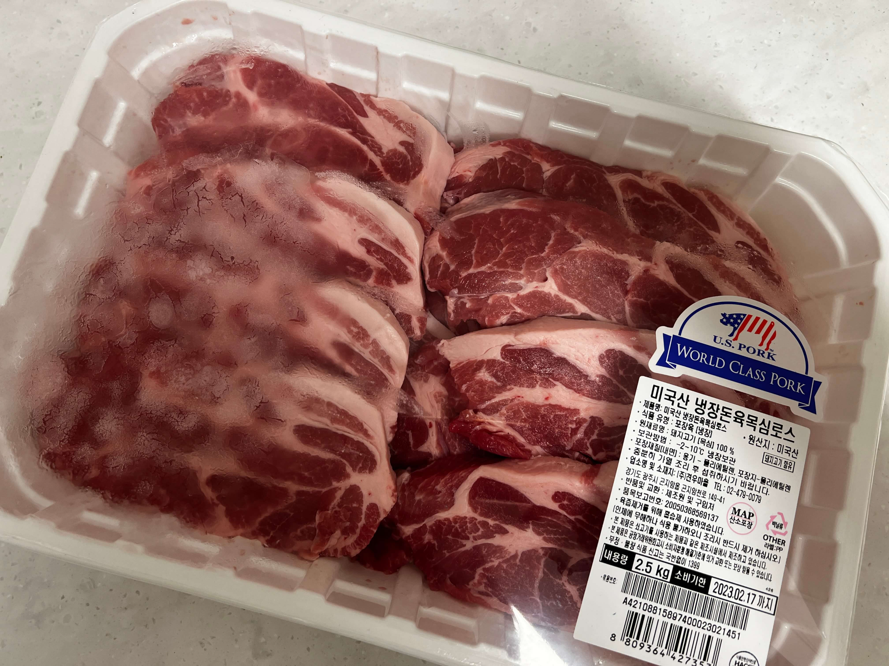 편스토랑에 갈비치킨이 나온 이후로 꼭 만들어달라는 아이들의 요청에 따라 닭볶음탕용 닭도 한팩 샀고, 늘 빠지지 않는 목심도 한팩 넣어보았네요. 코스트코에는 닭다리나 닭 날개, 닭가슴살만 따로 포장해 놓은 제품이 있는데, 처음에는 닭다리만 포장된 것을 사려고 하다가 너무 비싸다는 생각이 들어 볶음탕용으로 구매했습니다.