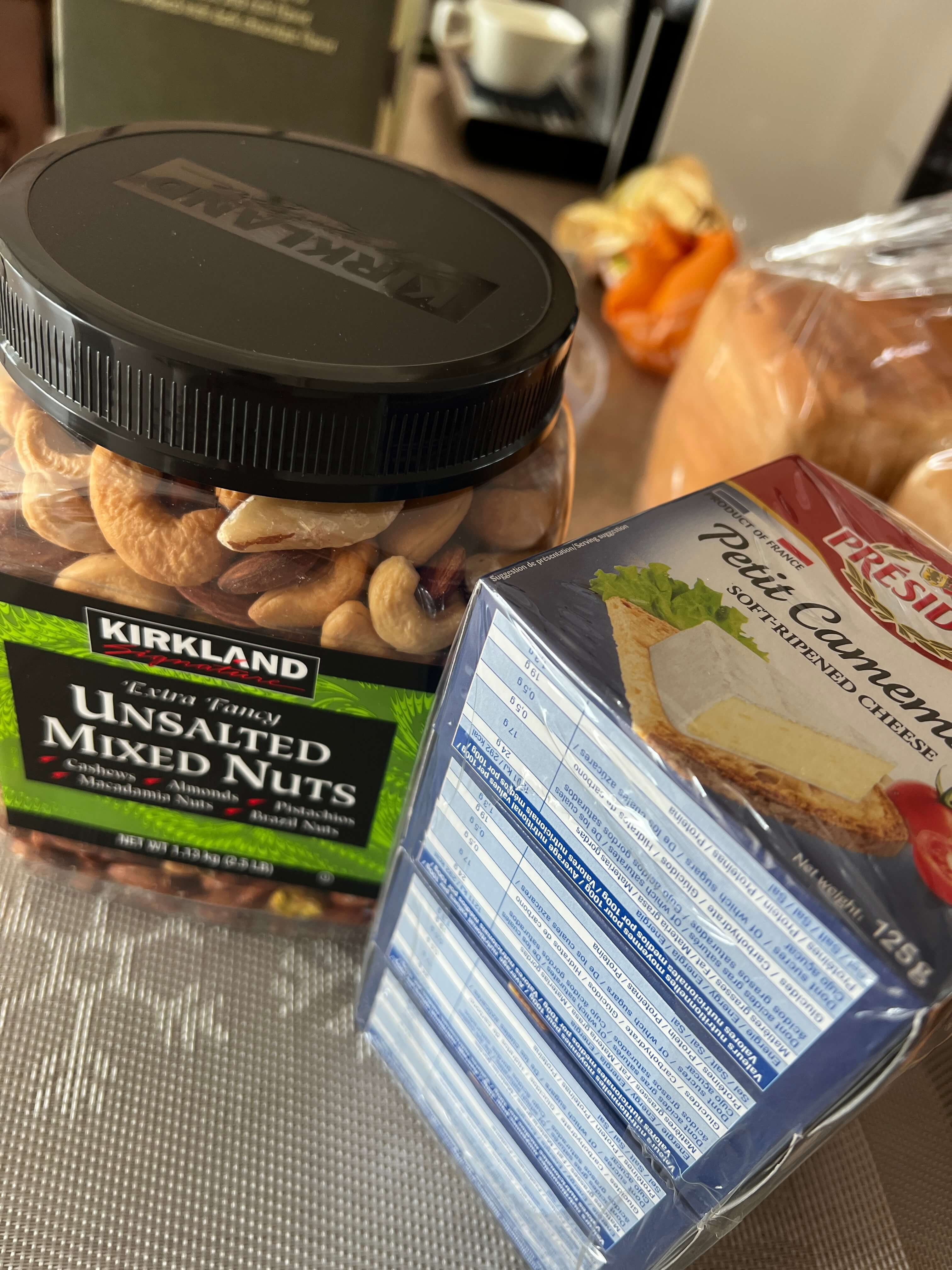 4팩들이 샌드위치 식빵도 갈때마다 쟁여놓는 품목입니다. 가격은 7천 원대로 식빵도 두툼하고 먹을 만합니다. 냉동실에 넣어두고 아침에 토스트나 프렌치토스트 해 먹기도 참 좋아요. 다음으로는 무염 믹스넛(2만 원대)과 까망베르치즈 4 캔들 이를 집어넣었습니다. 견과류는 무염과 가염 2가지 종류가 있고 가성비 괜찮다는 생아몬드도 있었는데, 무염 믹스넛이 참 맛있어서 벌써 몇 통째 구매한 아이템입니다. 까망베르치즈는 와인이나 간단한 식사에 곁들이기 참 좋아요.