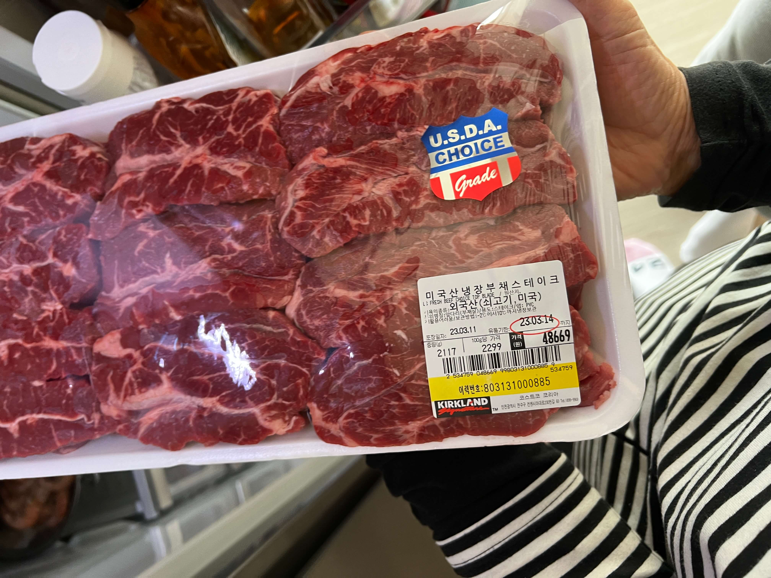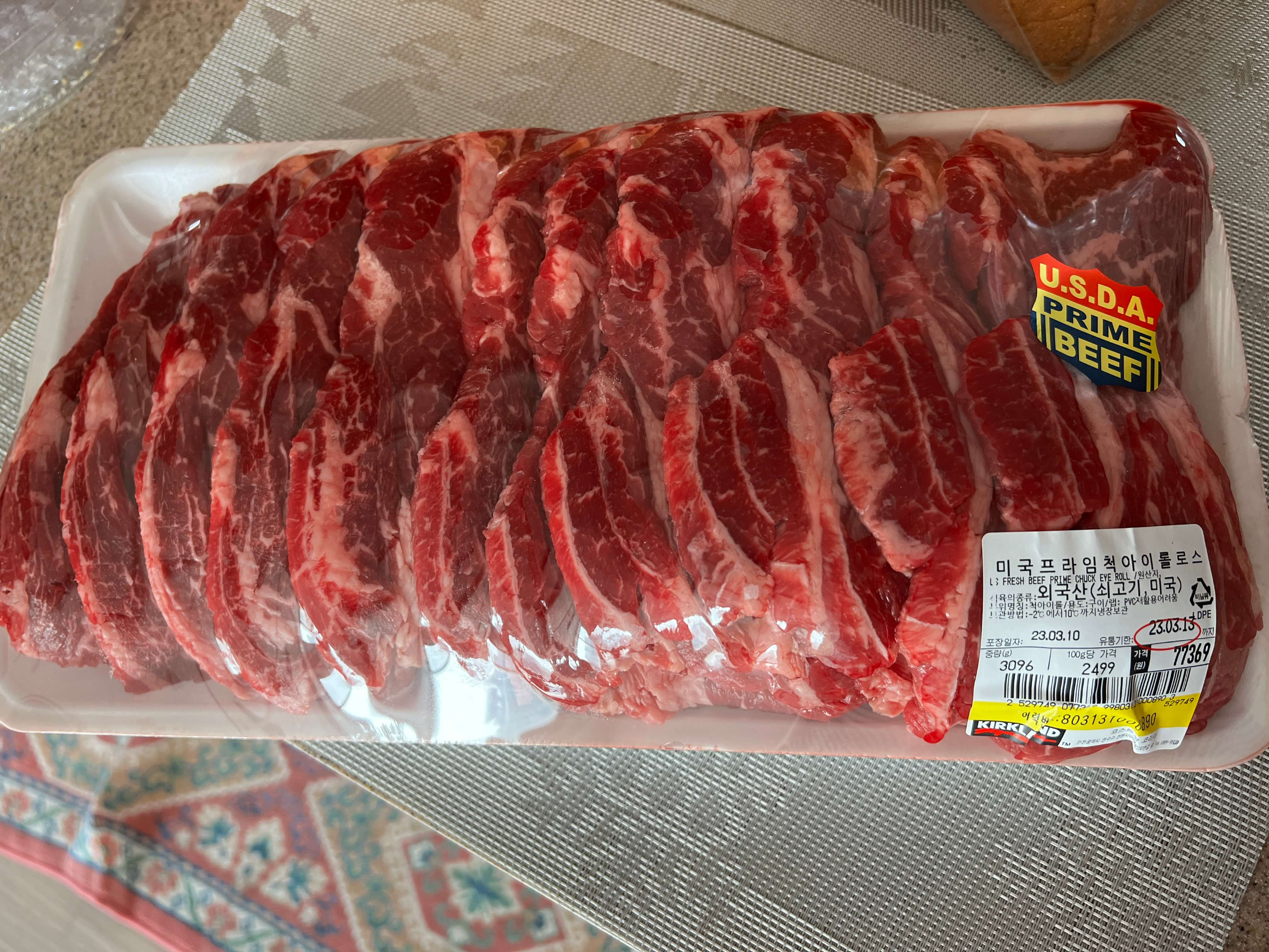 가장 먼저 집어든 것은 고기고기고기 ㅎㅎㅎ 미국산 냉장 부채슽이크와 미국산 프라임 척아이롤스입니다.