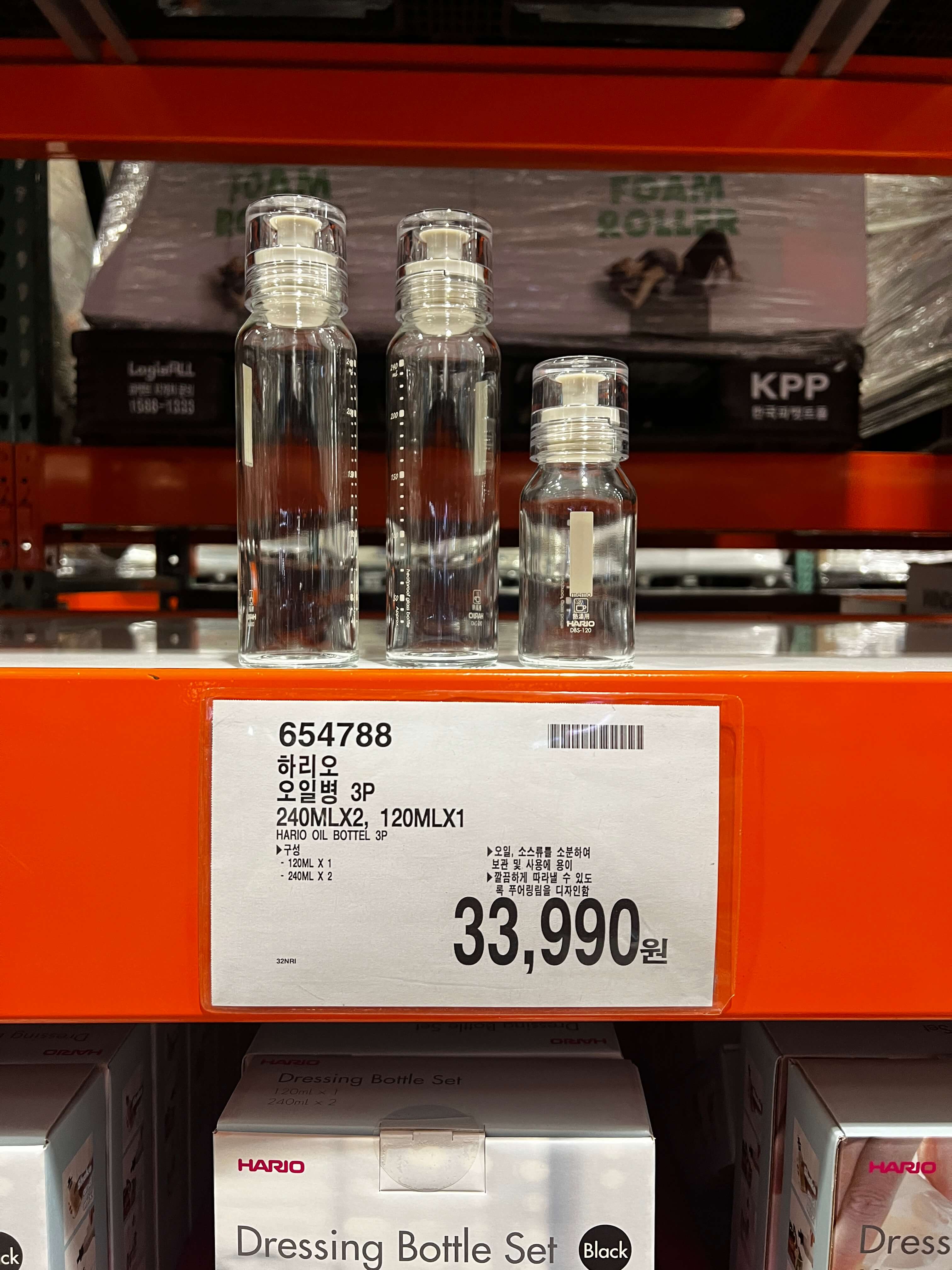 이번에 구매하지는 않았지만 의외로 코스트코 추천템으로 많이 고르시는 것이 이 오일병입니다. 요즘은 오일병 많이 사용하시잖아요. 저는 집에서 프리파라 오일스프레이를 사용하고 있어서 오일병을 따로 구매하지는 않았는데, 참기름이나 들기름을 넣어두기도 좋고 안에는 실리콘 처리가 되어있어서 새지 않게 오일류를 잘 보관하기에 괜찮은 아이템이라 따로 한번 소개해봅니다.