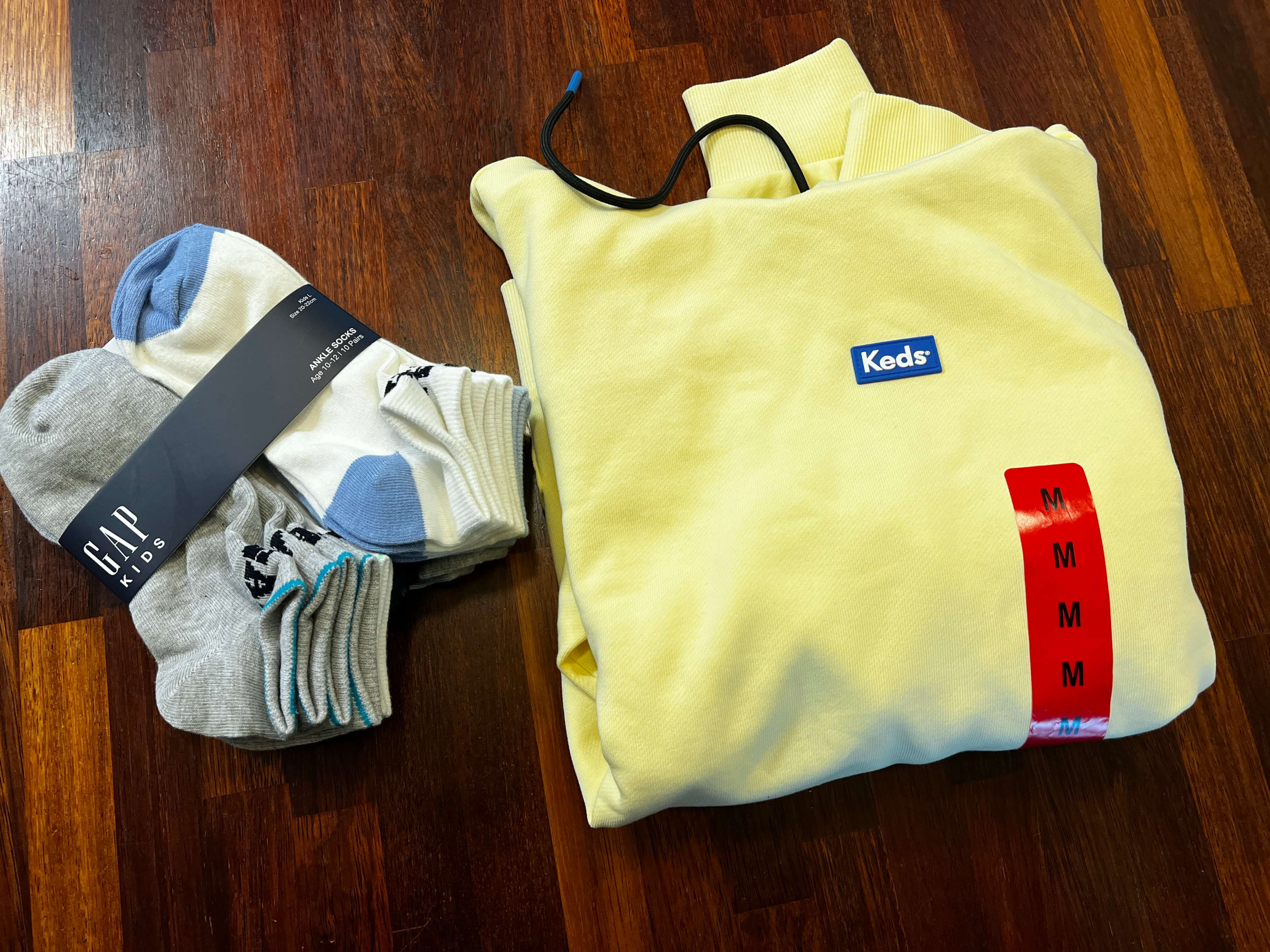 둘째님께서 발이 부쩍 크셔서 맞는 양말이 없기에 양말도 한 꾸러미 사봅니다. 집 근처 롯데마트에서는 괜찮은 양말이 3개 묶음에 5천원선 하던데, 10개 묶음에 가격이 그리 비싸지 않은 것 같아 집어 들었네요. Keds 후드티는 저를 위해 하나 사봅니다. 봄이라 예쁜 옷을 입고 싶은데 활동성 있는 옷을 사는 것이 또 좋을 것 같기도 해서 후드티이지만 봄 색을 골라봅니다.